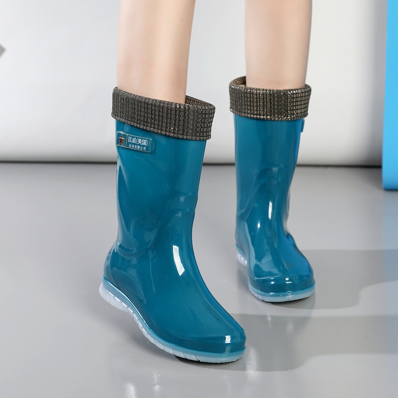 장화 여성용 방수 부드러운 바닥 물 신발 중간 튜브 유행 짧은 장화 학생 장화 비 슬립 따뜻한 새 긴 신발
