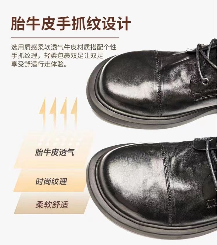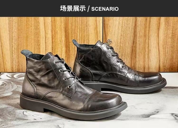 가을 남성 가죽 부츠 라운드 토 편안하고 내구성 있는 천연 가죽 하이탑 슈즈 다용도 영국 스타일 대형 사이즈 트렌디 미드탑 마틴 부츠