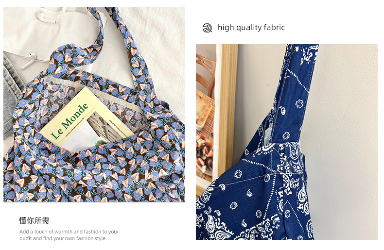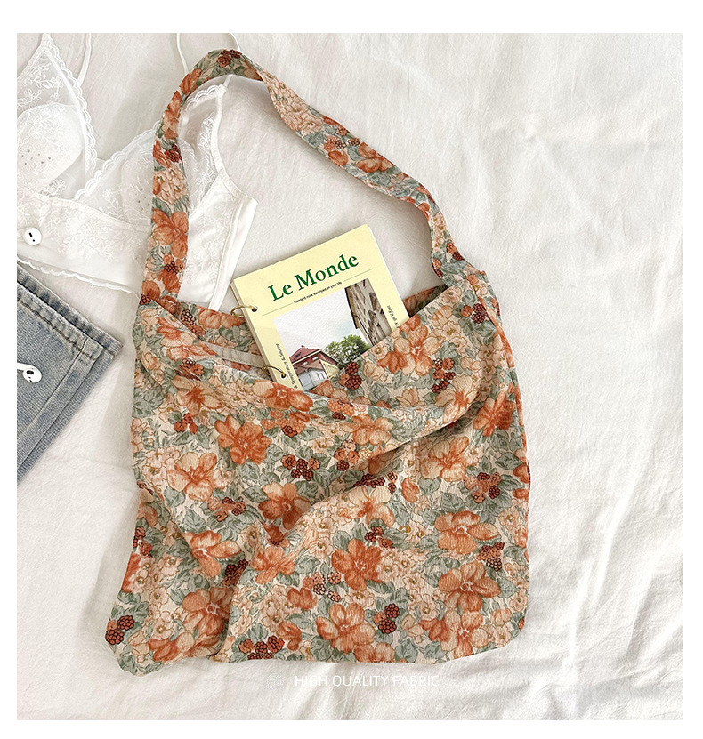 2025년 크로스보더 문예 레트로 캔버스 가방 여성용 한국 스타일 인스 스타일 대용량 캔버스 여성 가방 숄더백 도매스토어 가기