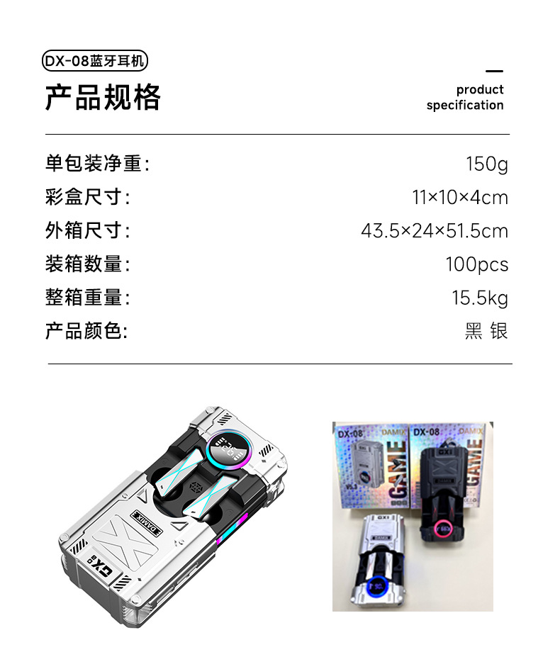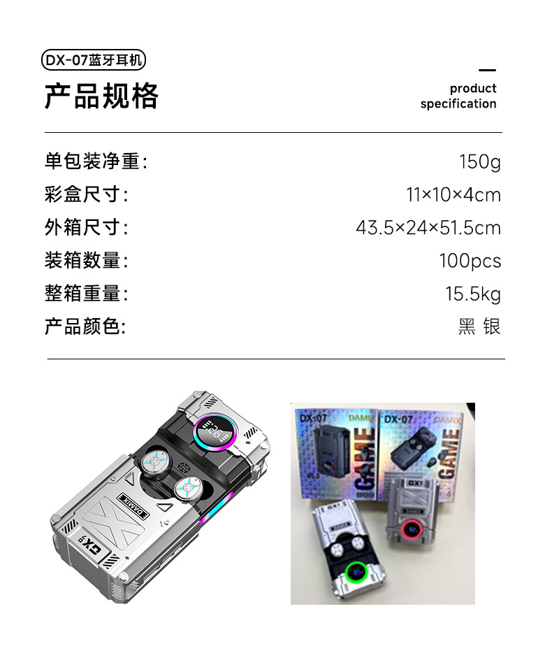 DX-08 블루투스 이어폰 인이어형 메카닉 메탈 전원 표시기 DX07 초장시간 배터리 무선 블루투스 5.3