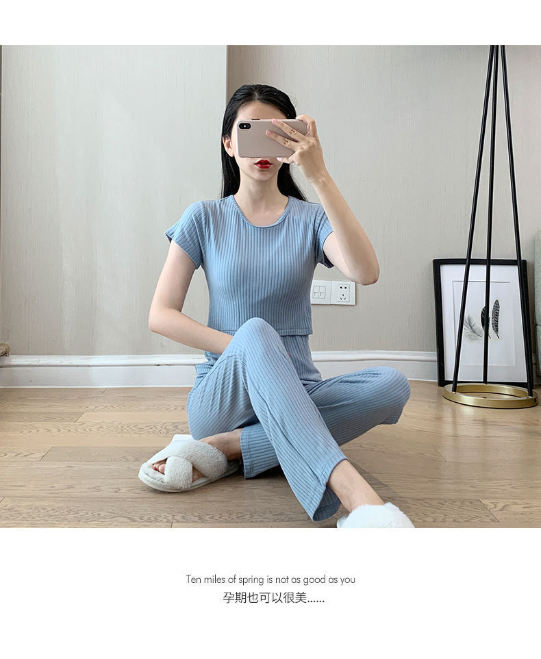 출산 세트 패션 반팔 티셔츠 2 인용 세련된 봄과 여름 최고 느슨한 대형 봄과 여름 원피스스토어 가기
