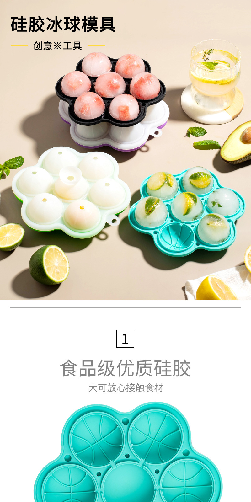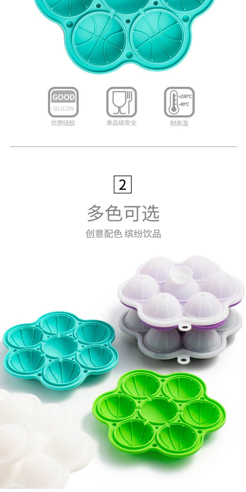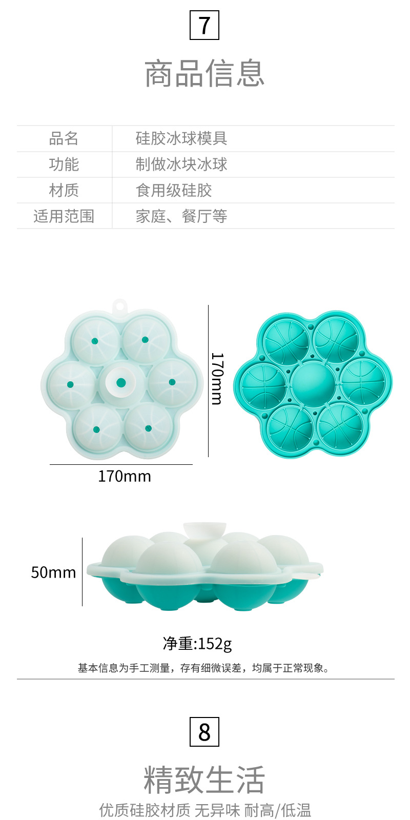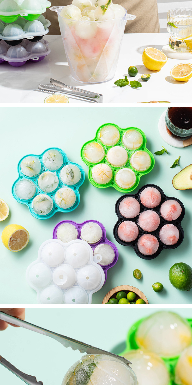 7 홀 실리콘 라운드 아이스 큐브 금형 위스키 아이스 볼 금형 쉬운 철거 아이스 큐브 트레이