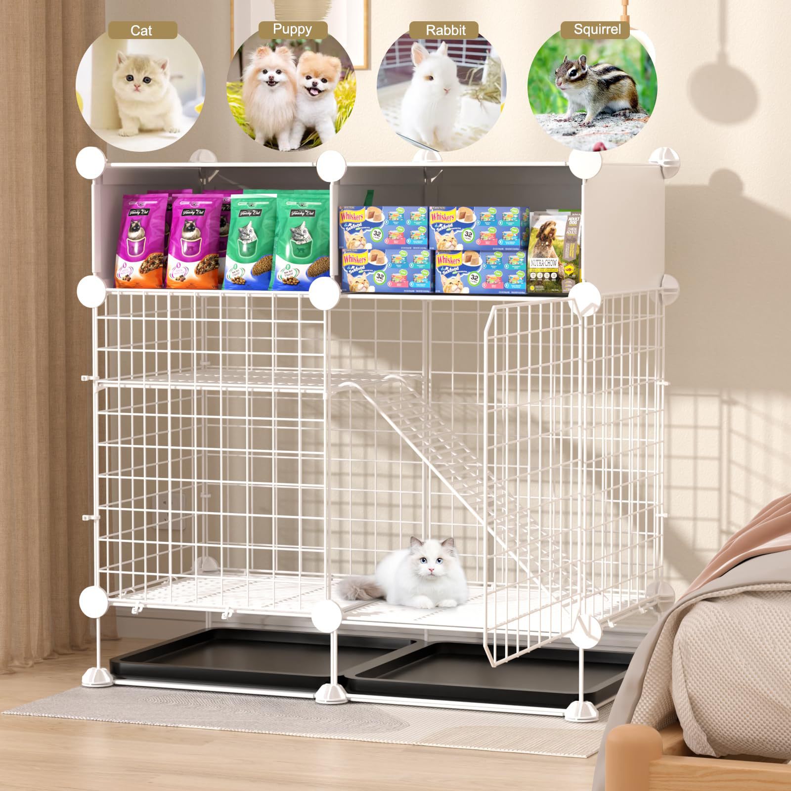 코너 토끼 케이지 2 층 작은 동물 울타리 고양이 케이지 개 케이지 실내 고양이 케이지 토끼 트레이 금속 와이어 햄스터 케이지스토어 가기