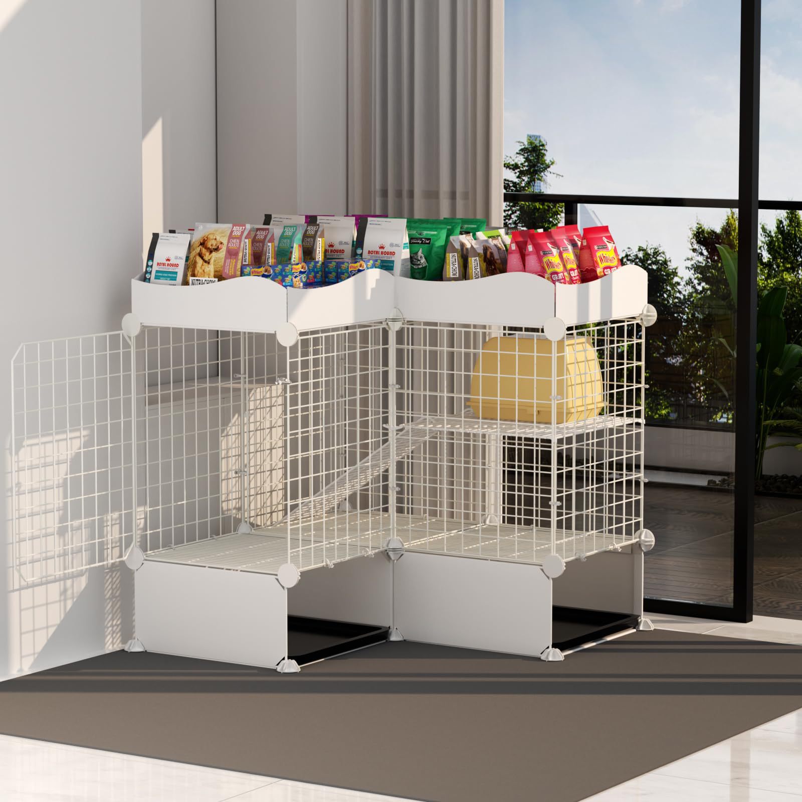 코너 토끼 케이지 2 층 작은 동물 울타리 고양이 케이지 개 케이지 실내 고양이 케이지 토끼 트레이 금속 와이어 햄스터 케이지
