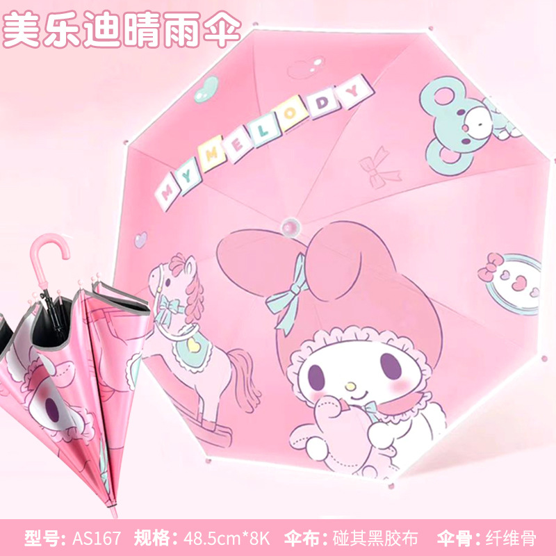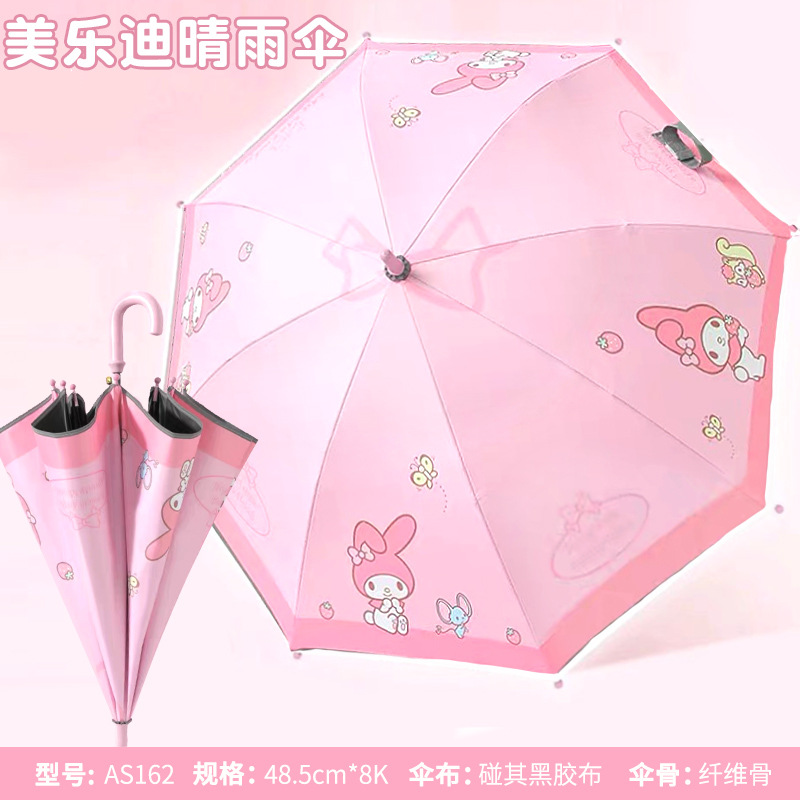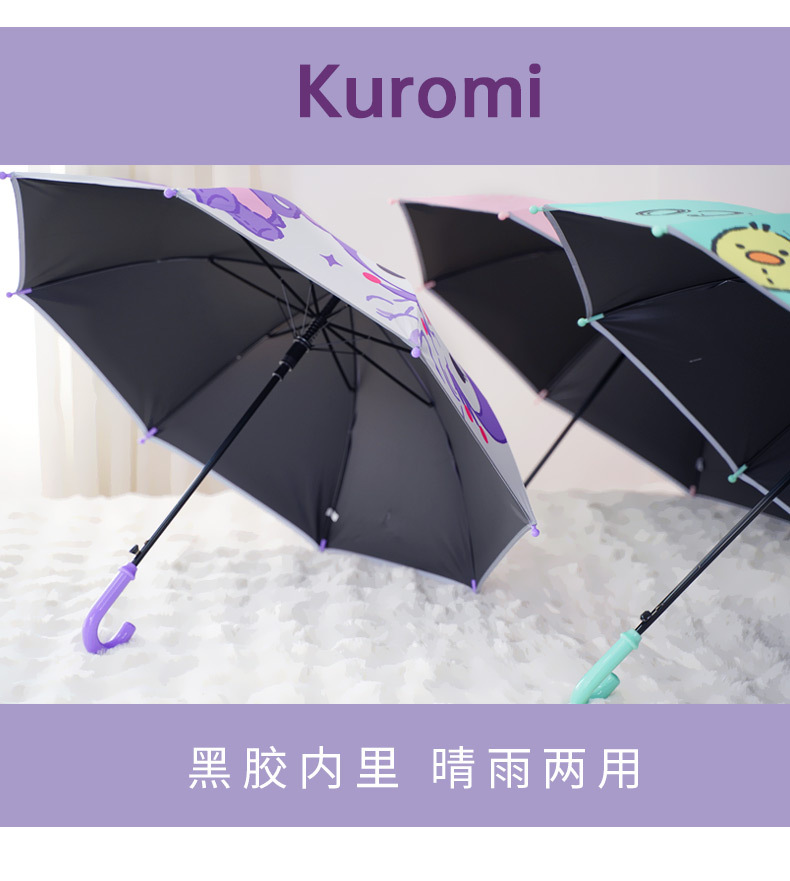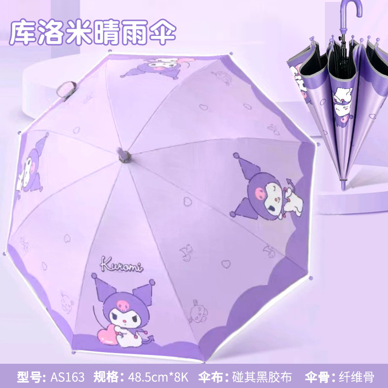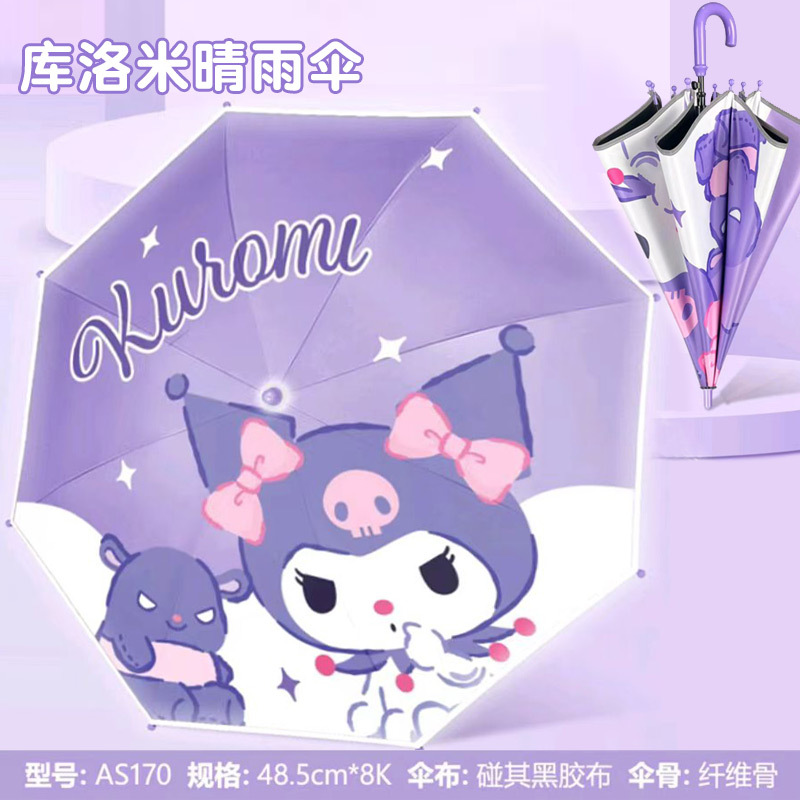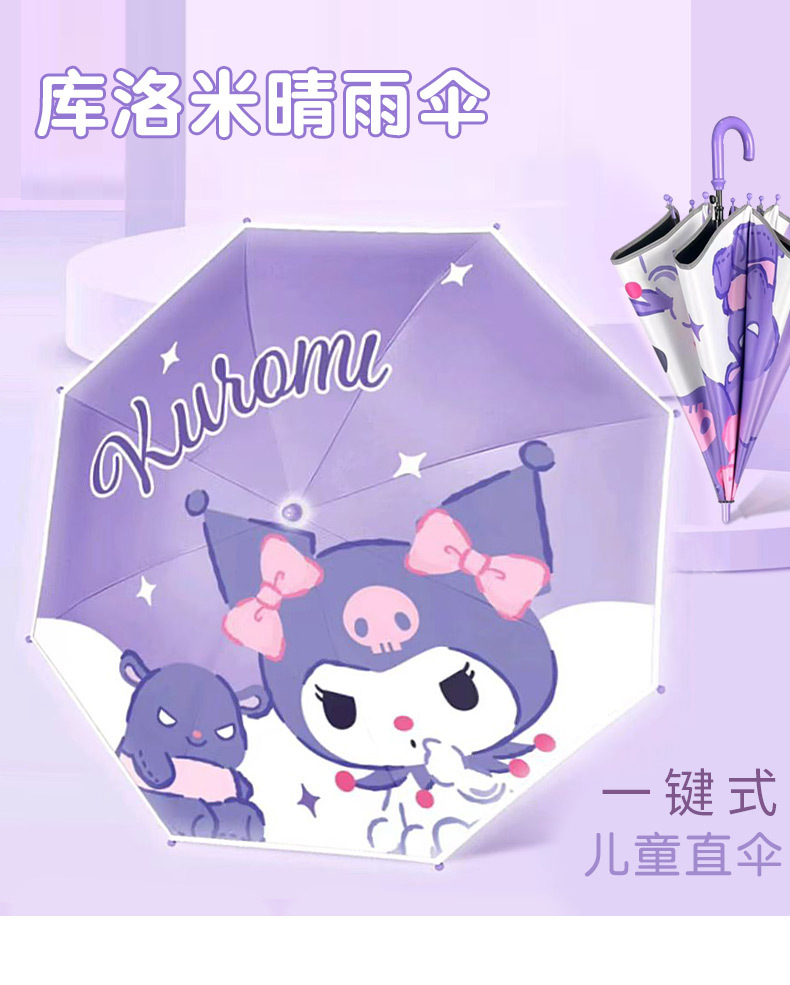 어린이 우산 소녀 맑고 비오는 우산 검은 우산 긴 손잡이 소녀 반자동 우산 스트레이트 우산 Kuromi