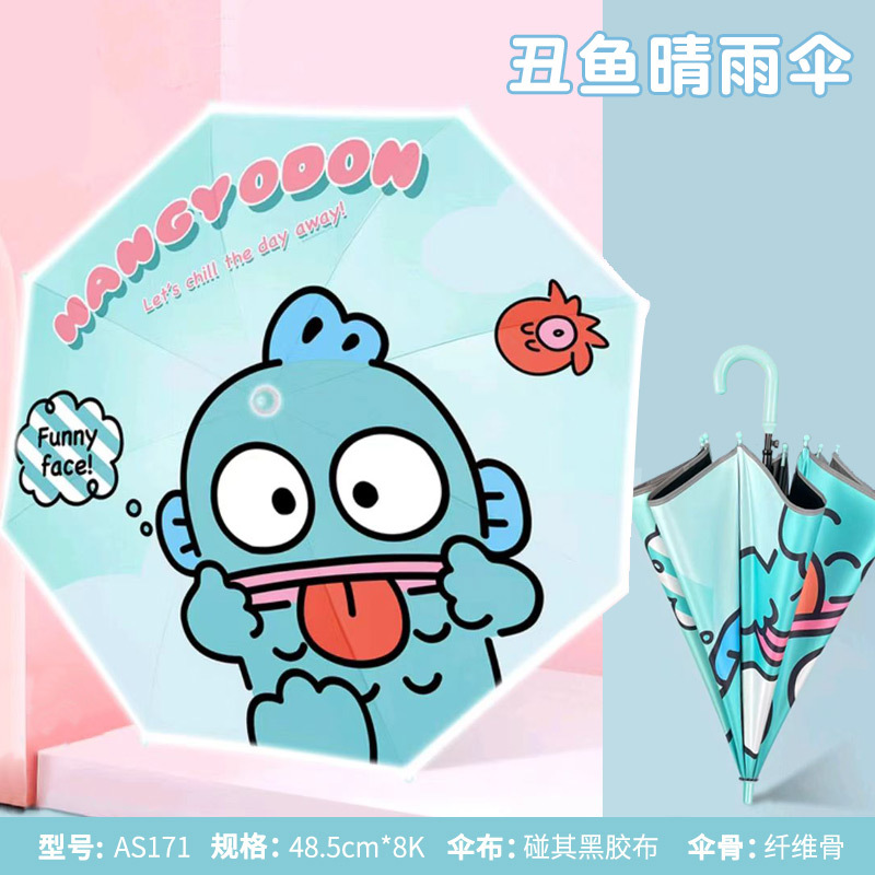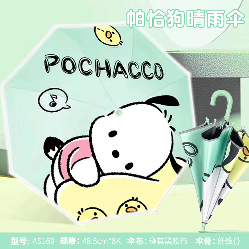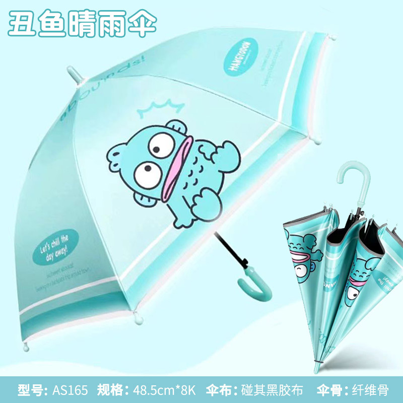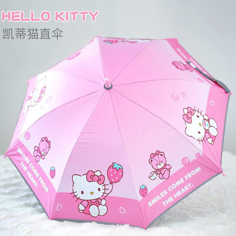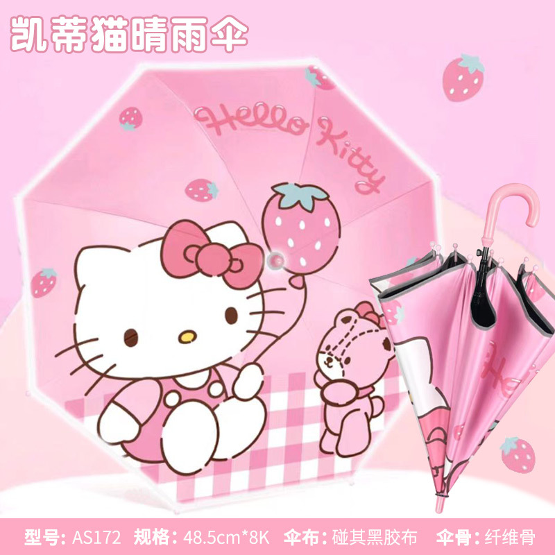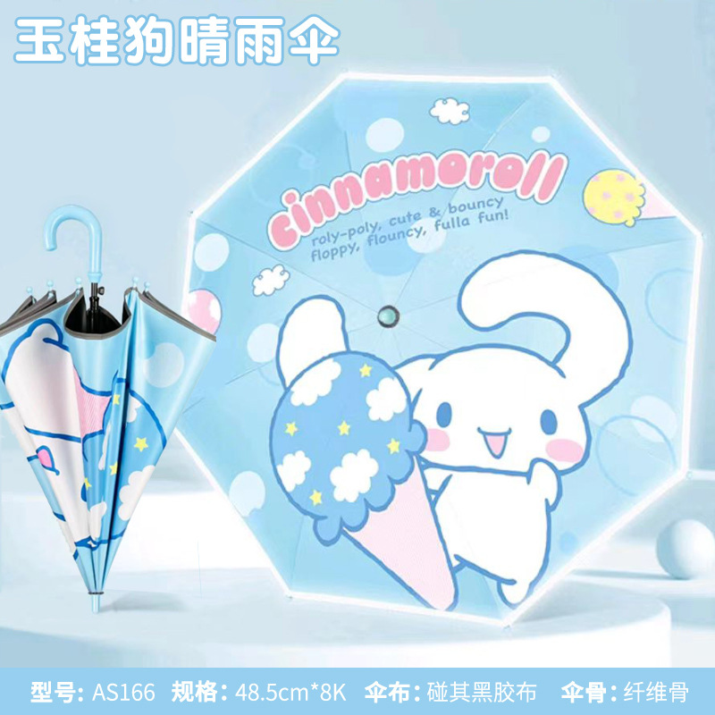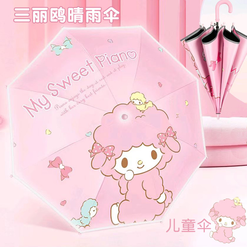 어린이 우산 소녀 맑고 비오는 우산 검은 우산 긴 손잡이 소녀 반자동 우산 스트레이트 우산 Kuromi