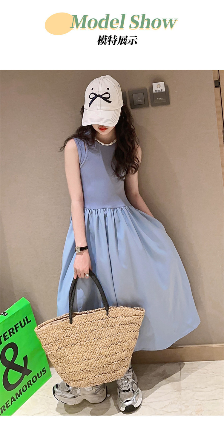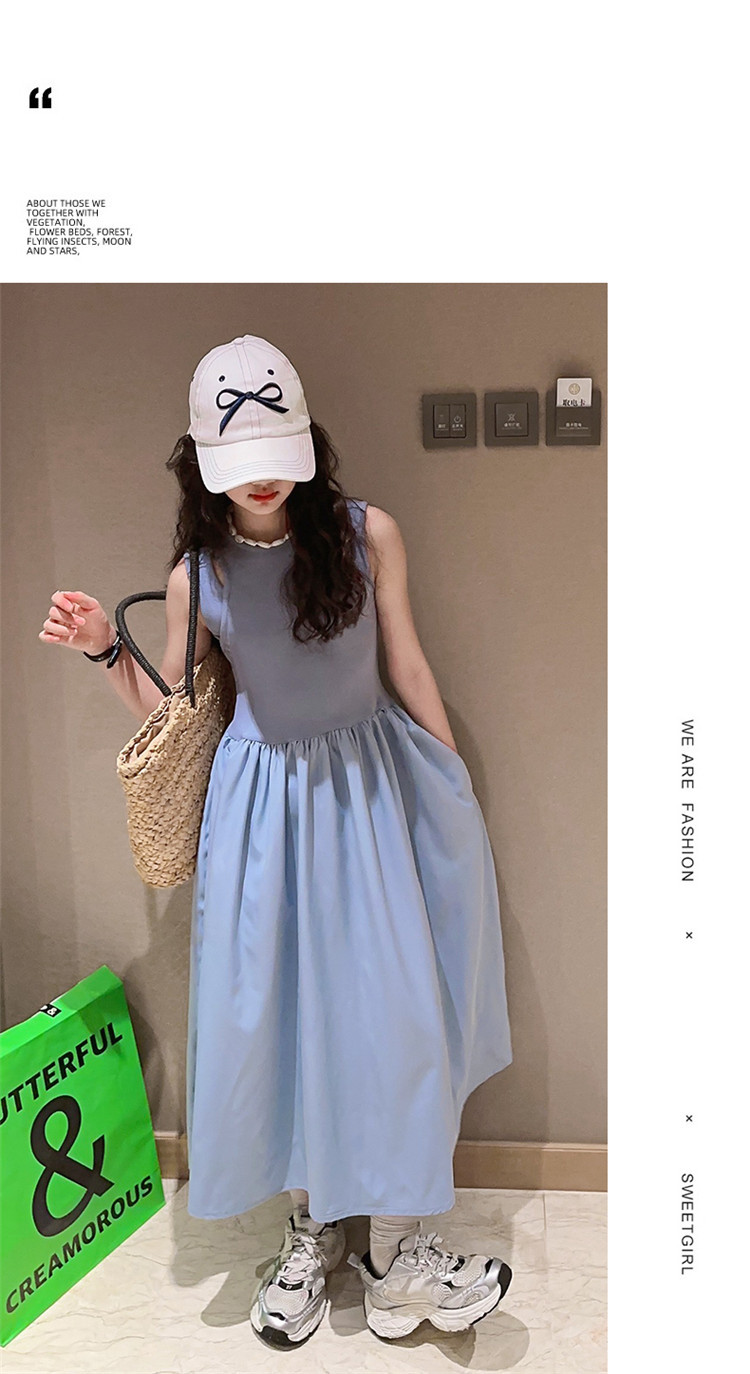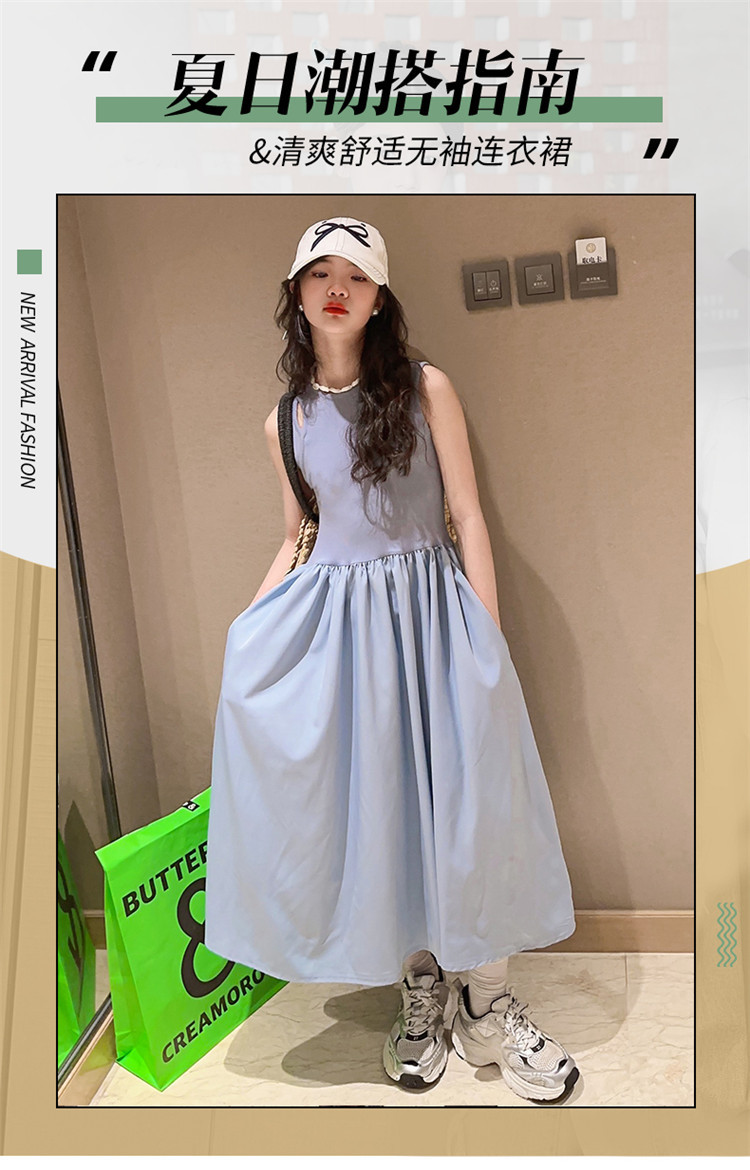 소녀 여름 원피스 어린이 여름 푸른 한국 스타일 원피스 큰 어린이 2024 새로운 스타일 서양식 헵번 스타일 긴 원피스