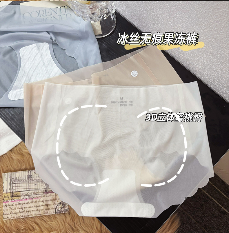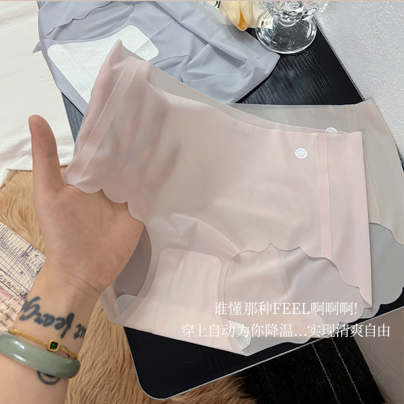 여름 아이스 실크 추적없는 얇은 중간 허리 울트라 얇은 대형 사이즈 속옷 여성과 소녀를위한 통기성 마스크 엉덩이 빠른 건조 브리프