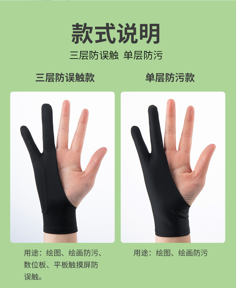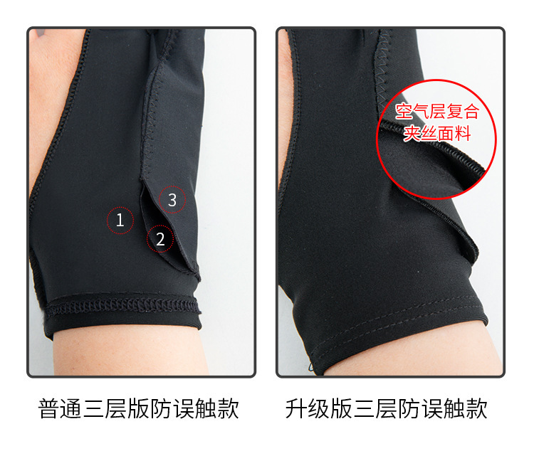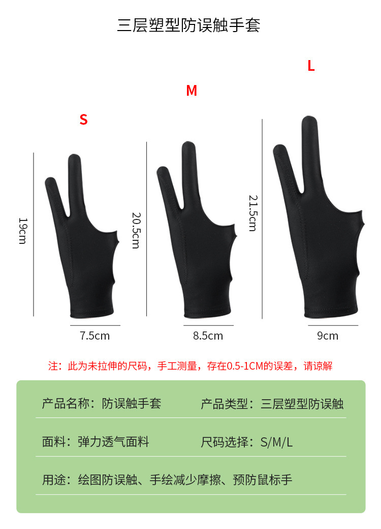 엄선된 맞춤형 2손가락 터치방지 장갑, 그림 그리기용 태블릿 오염방지 손가락 없는 장갑, 정전식 펜 터치스크린용 땀방지 그림 그리기 장갑