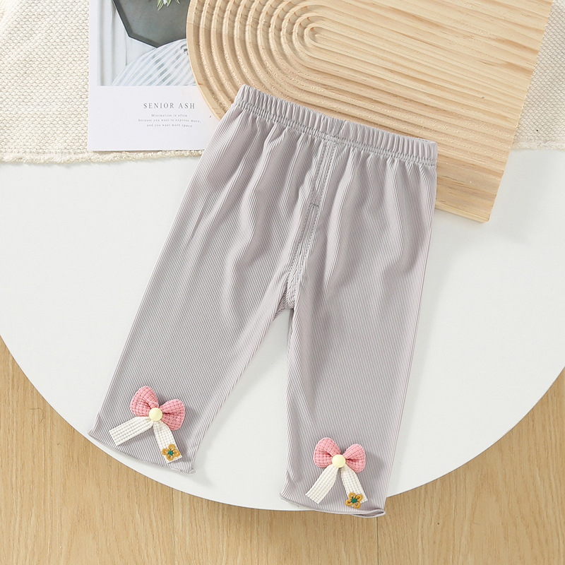 여아 크롭 팬츠, 여름 아이스 실크 여아 레깅스, 여름 아동용 중간 길이 바지, 아동용 바지, 어린 소녀 바지