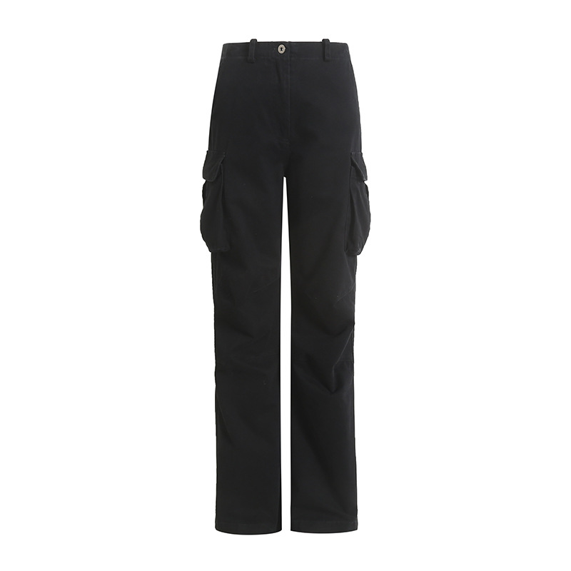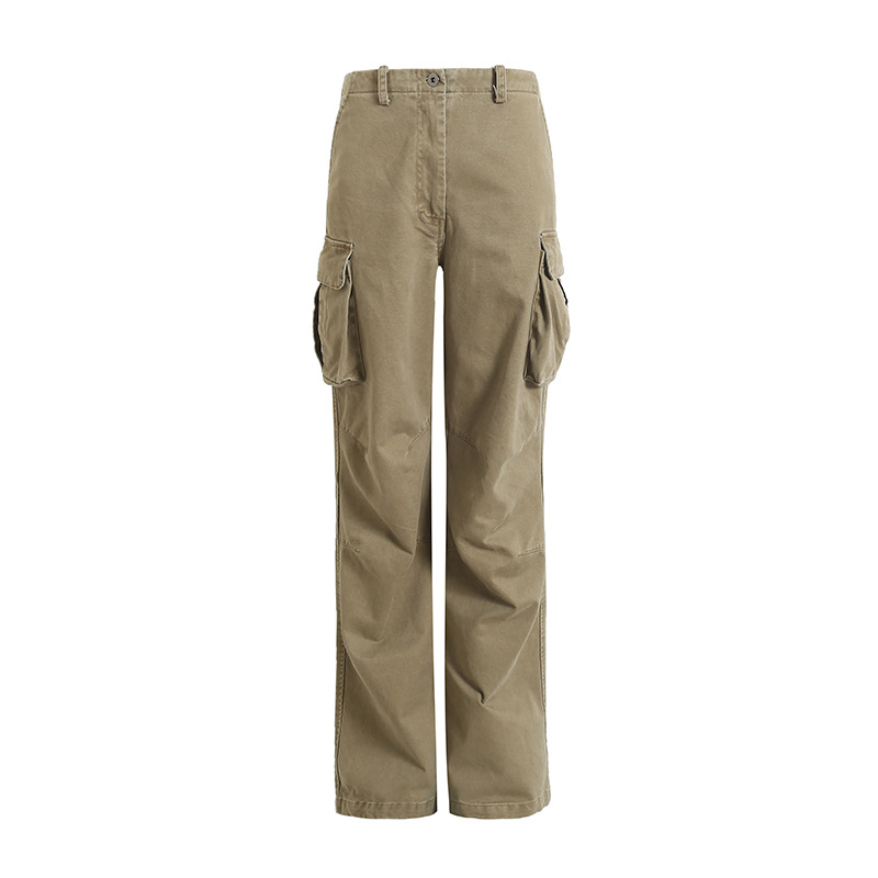 새로운 복고풍 캐주얼 느슨한 슬리밍 오래 된 멀티 포켓 와이드 레그 오버롤 여성용 스트레이트 바지 3258스토어 가기