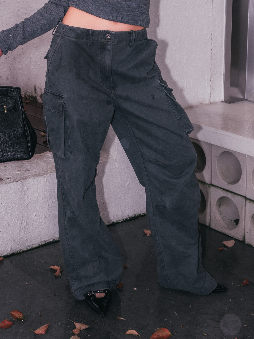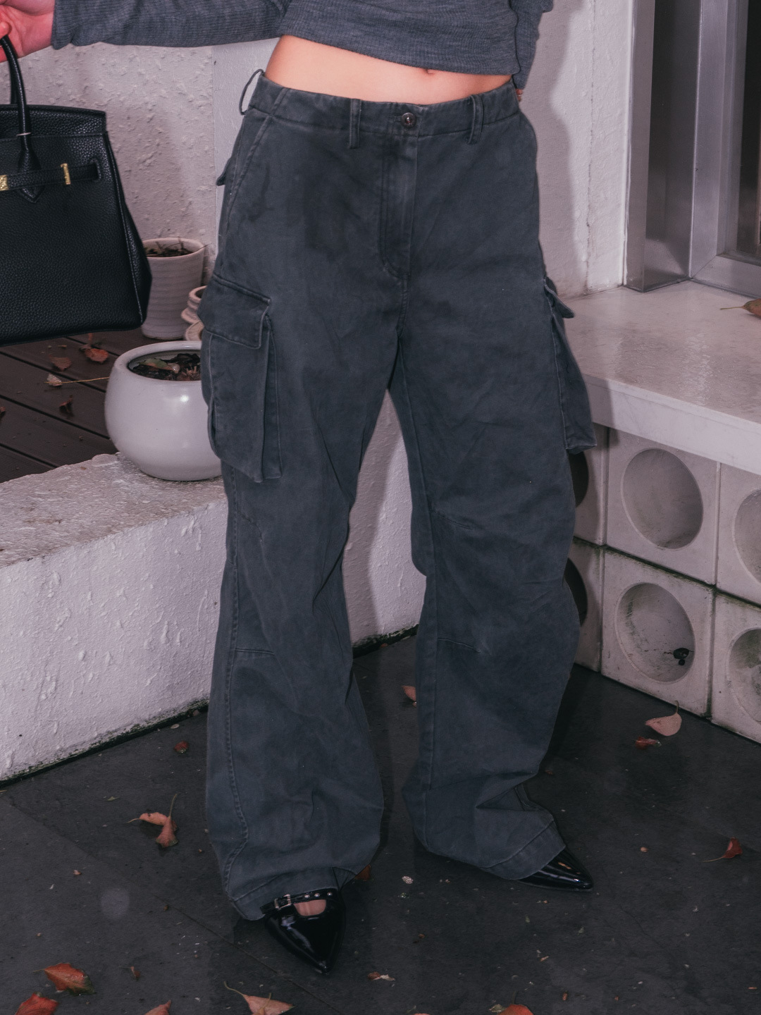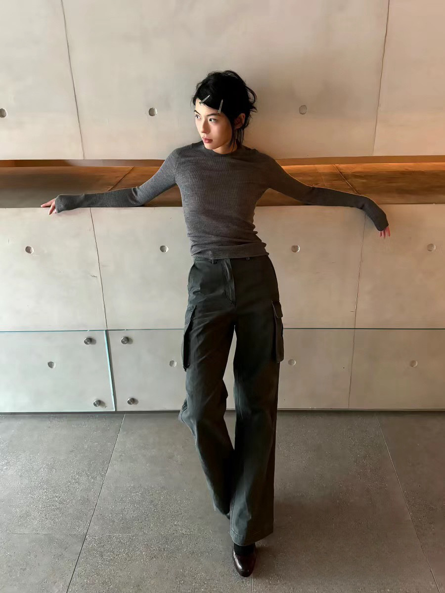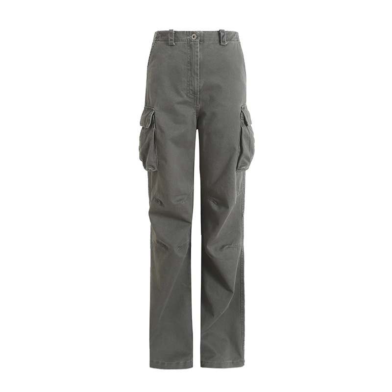 새로운 복고풍 캐주얼 느슨한 슬리밍 오래 된 멀티 포켓 와이드 레그 오버롤 여성용 스트레이트 바지 3258