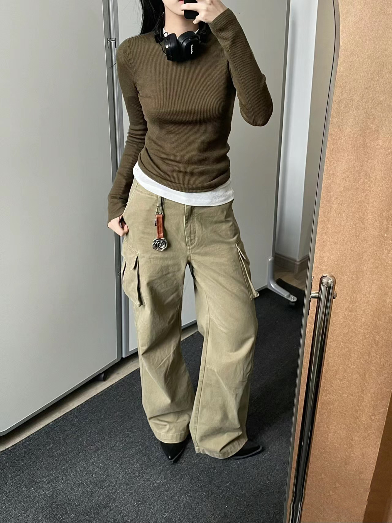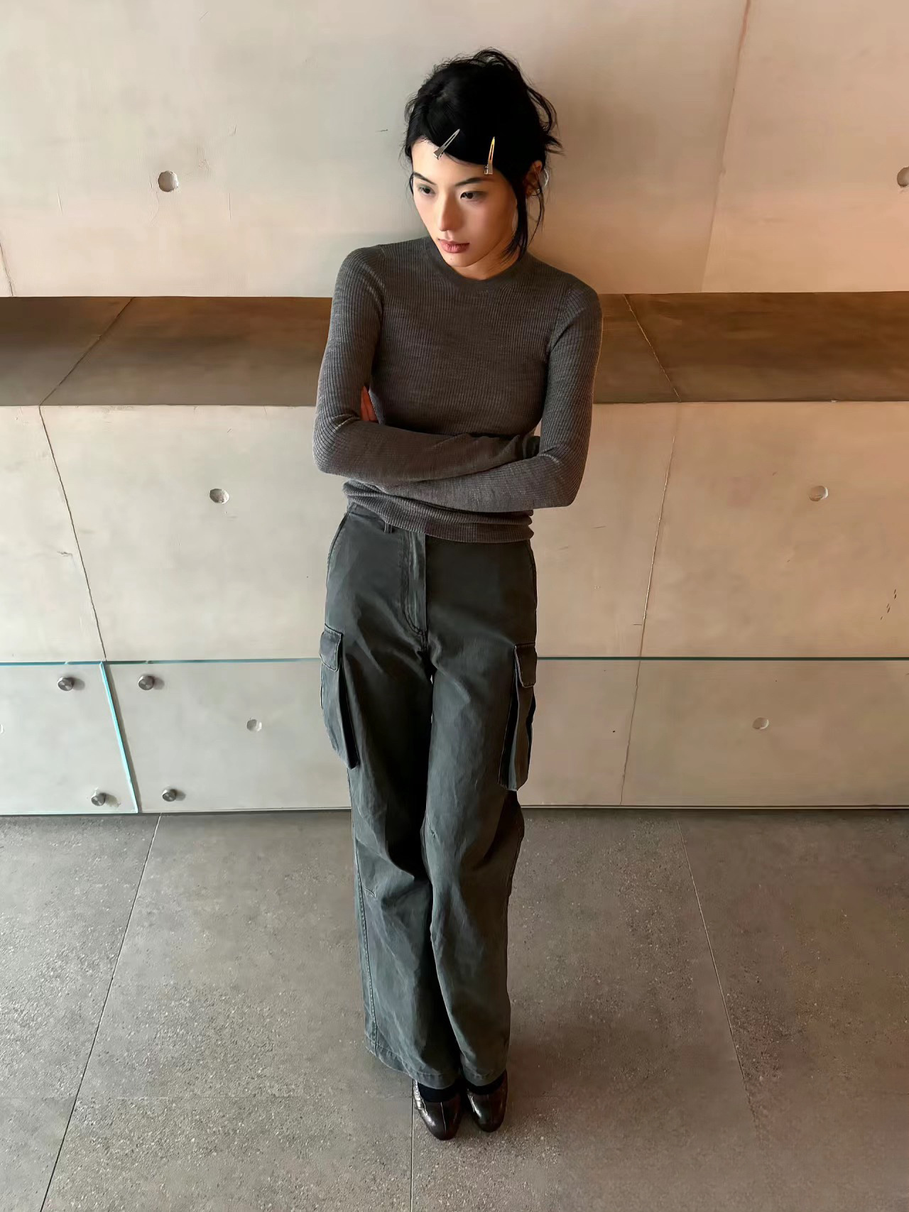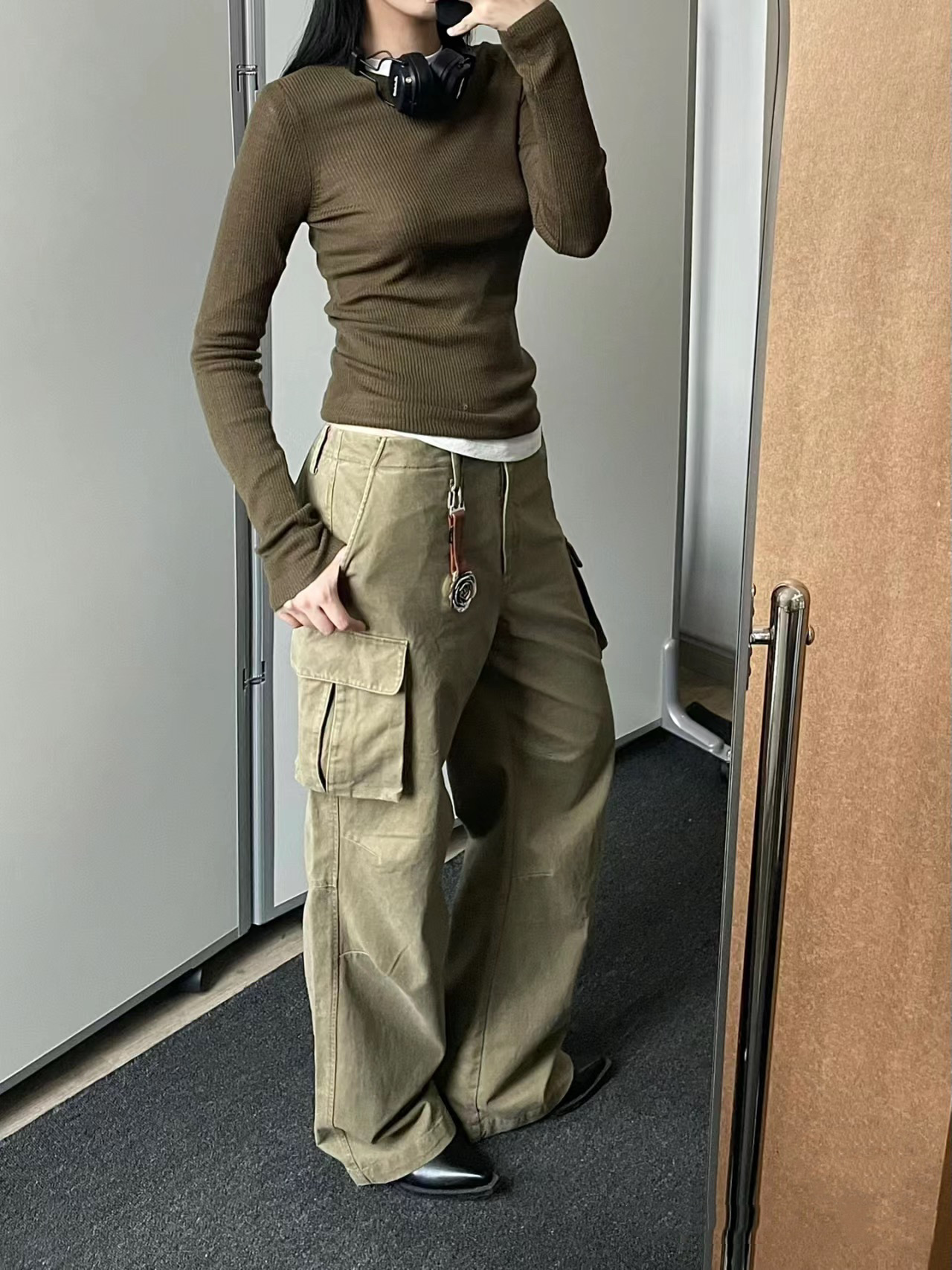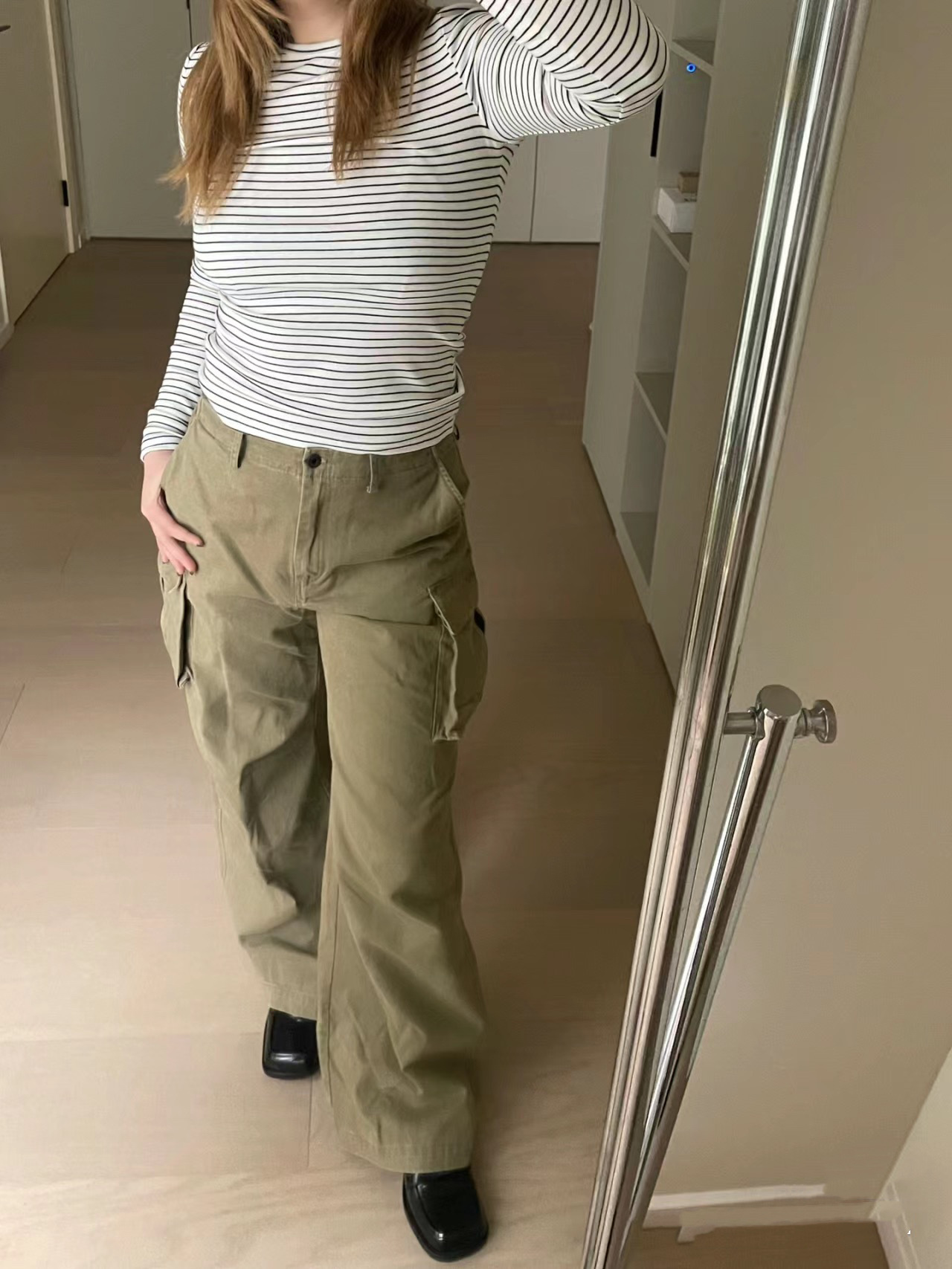 새로운 복고풍 캐주얼 느슨한 슬리밍 오래 된 멀티 포켓 와이드 레그 오버롤 여성용 스트레이트 바지 3258