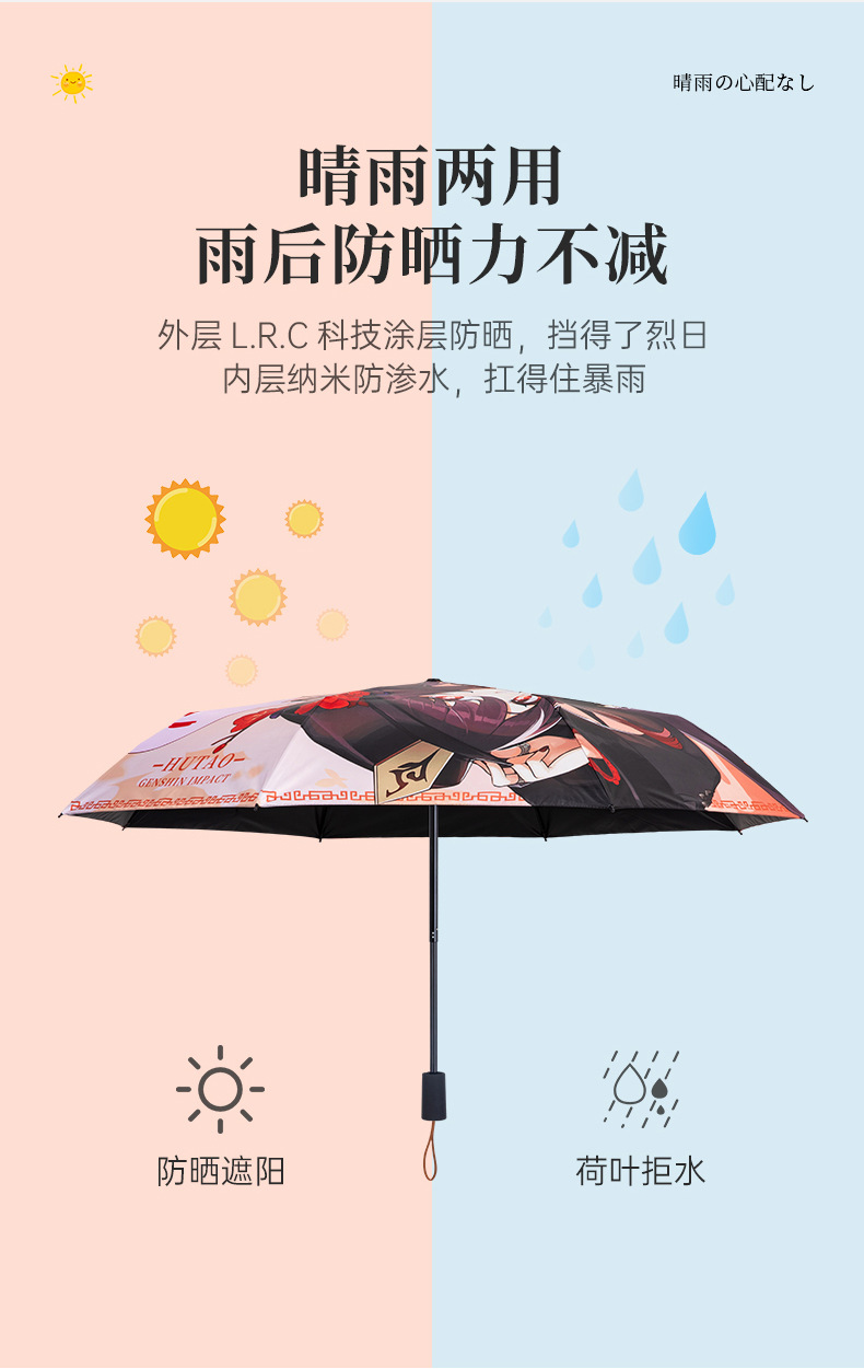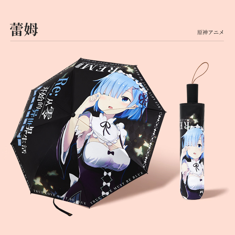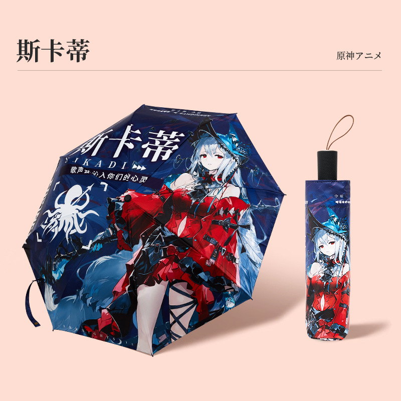 주변 애니메이션 캐릭터 접이식 우산 호두 간 yurem 타임 사키 햇볕이 잘 드는 우산에서 멀리 떨어진 미친 세 스카티 시계
