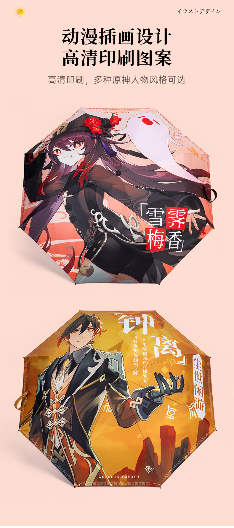 주변 애니메이션 캐릭터 접이식 우산 호두 간 yurem 타임 사키 햇볕이 잘 드는 우산에서 멀리 떨어진 미친 세 스카티 시계스토어 가기