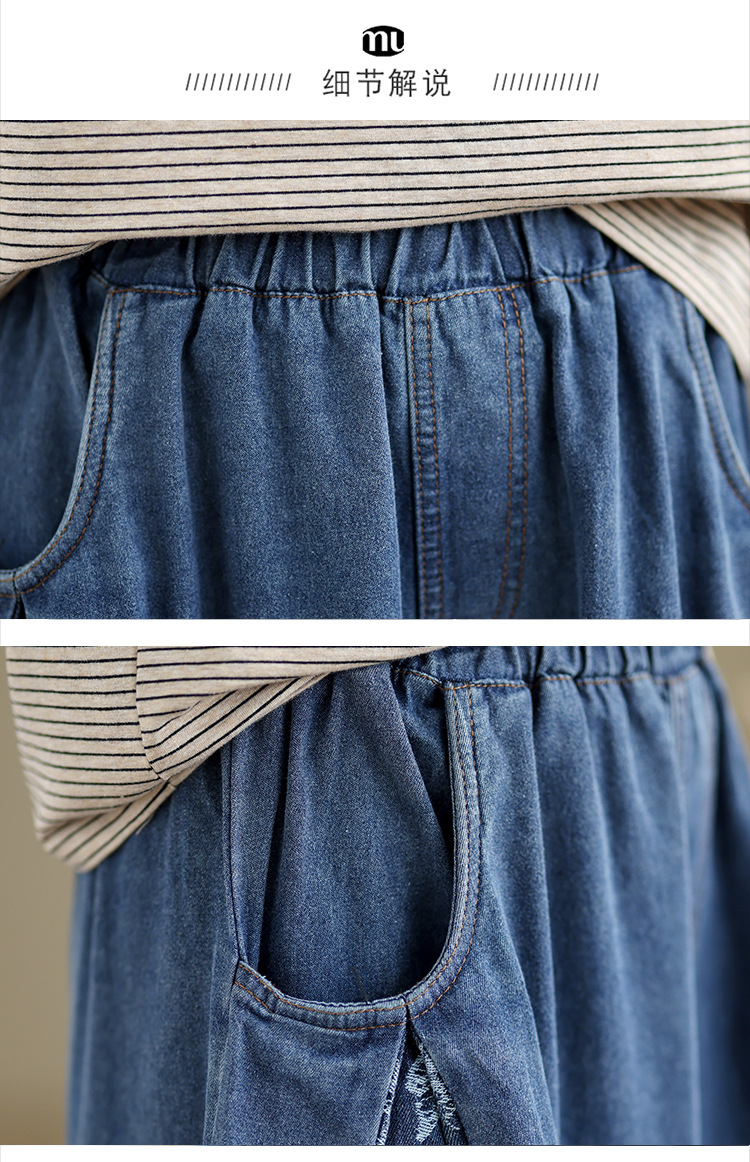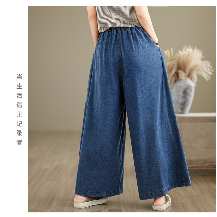 리얼 샷 스팟 여름 문학 얇은 데님 스티칭 캐주얼 복고풍 느슨한 대형 여성용 넓은 다리 바지 9 바지스토어 가기
