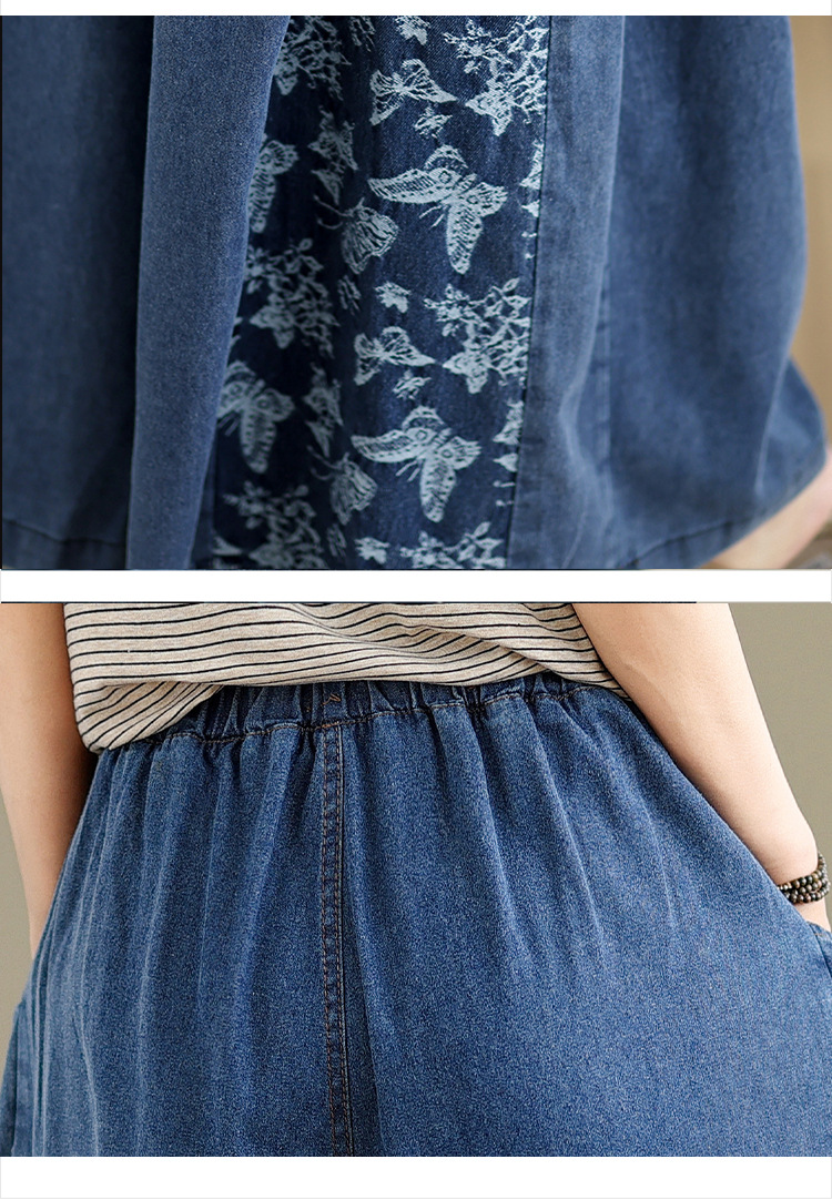 리얼 샷 스팟 여름 문학 얇은 데님 스티칭 캐주얼 복고풍 느슨한 대형 여성용 넓은 다리 바지 9 바지
