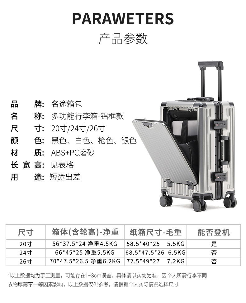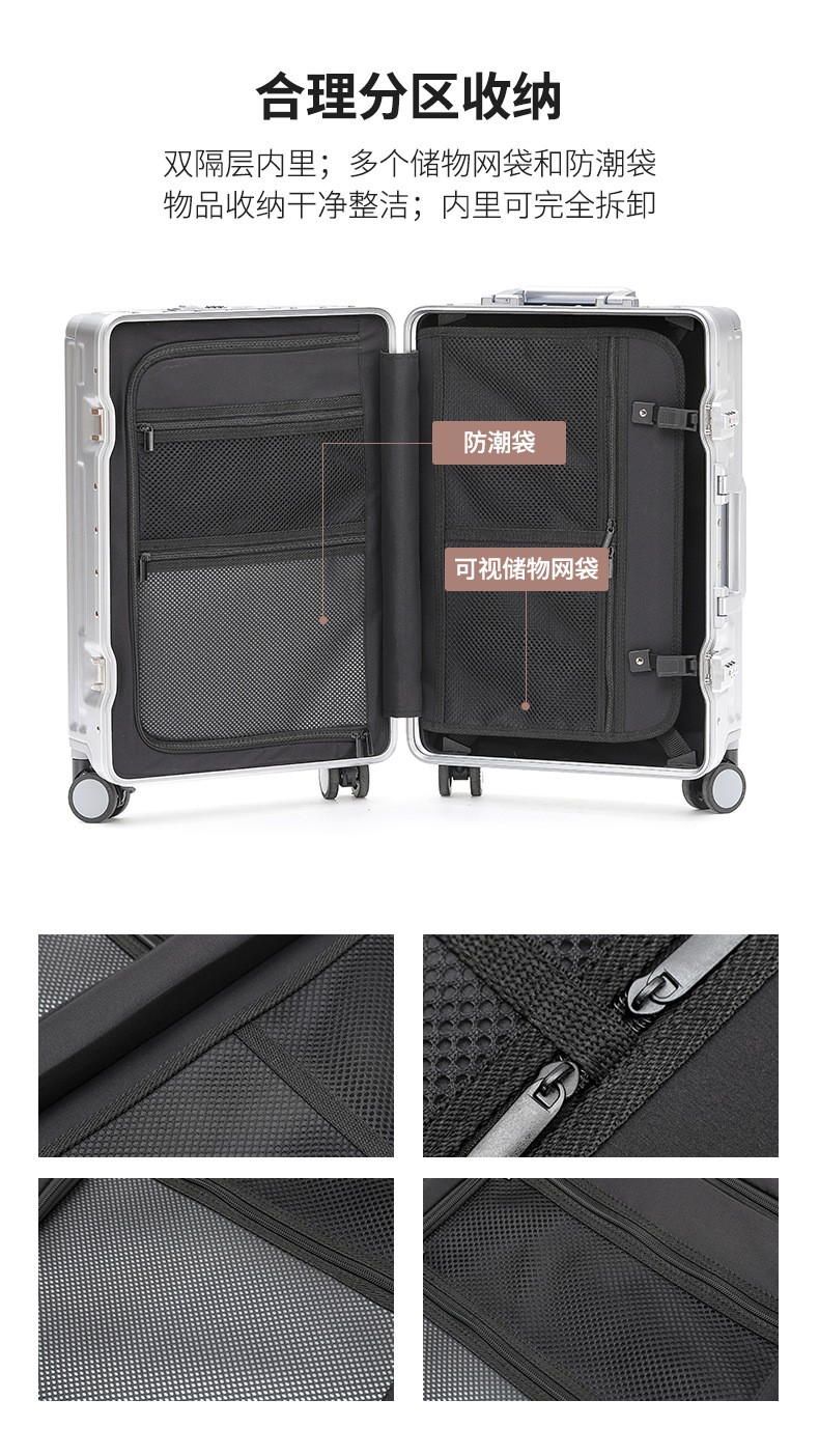 다기능 비즈니스 여행 수하물 26 인치 알루미늄 프레임 유니버설 휠 트롤리 케이스 20 인치 탑승 가방 도매스토어 가기