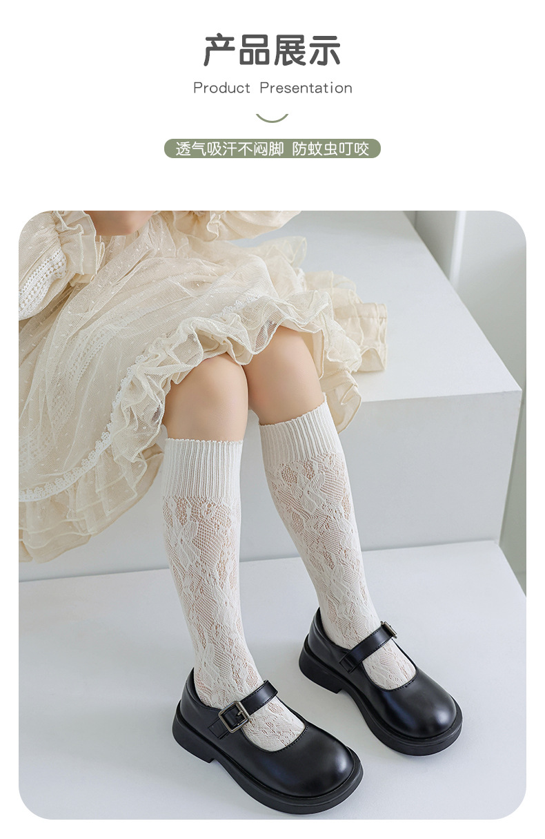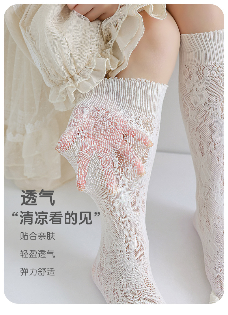 어린이 양말 여름 얇은 소녀 로리타 스타일 공주 송아지 양말 한국 레이스 메쉬 통기성 스타킹