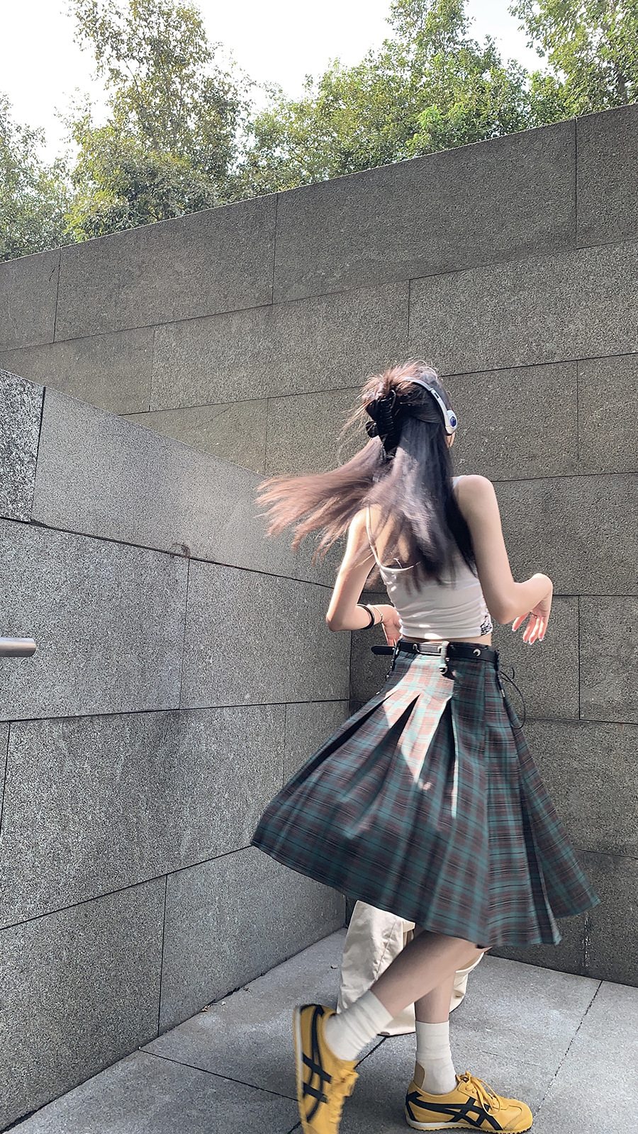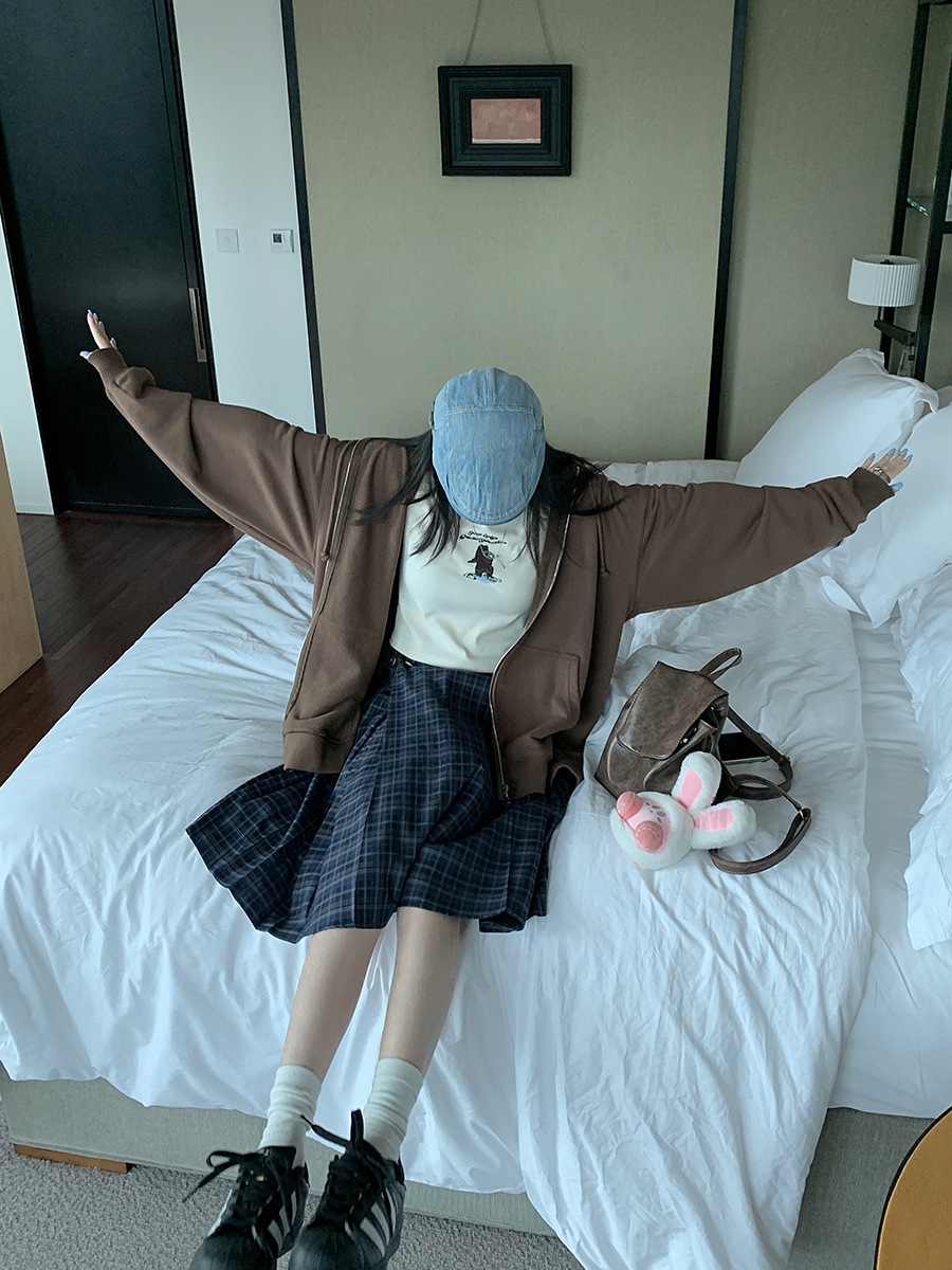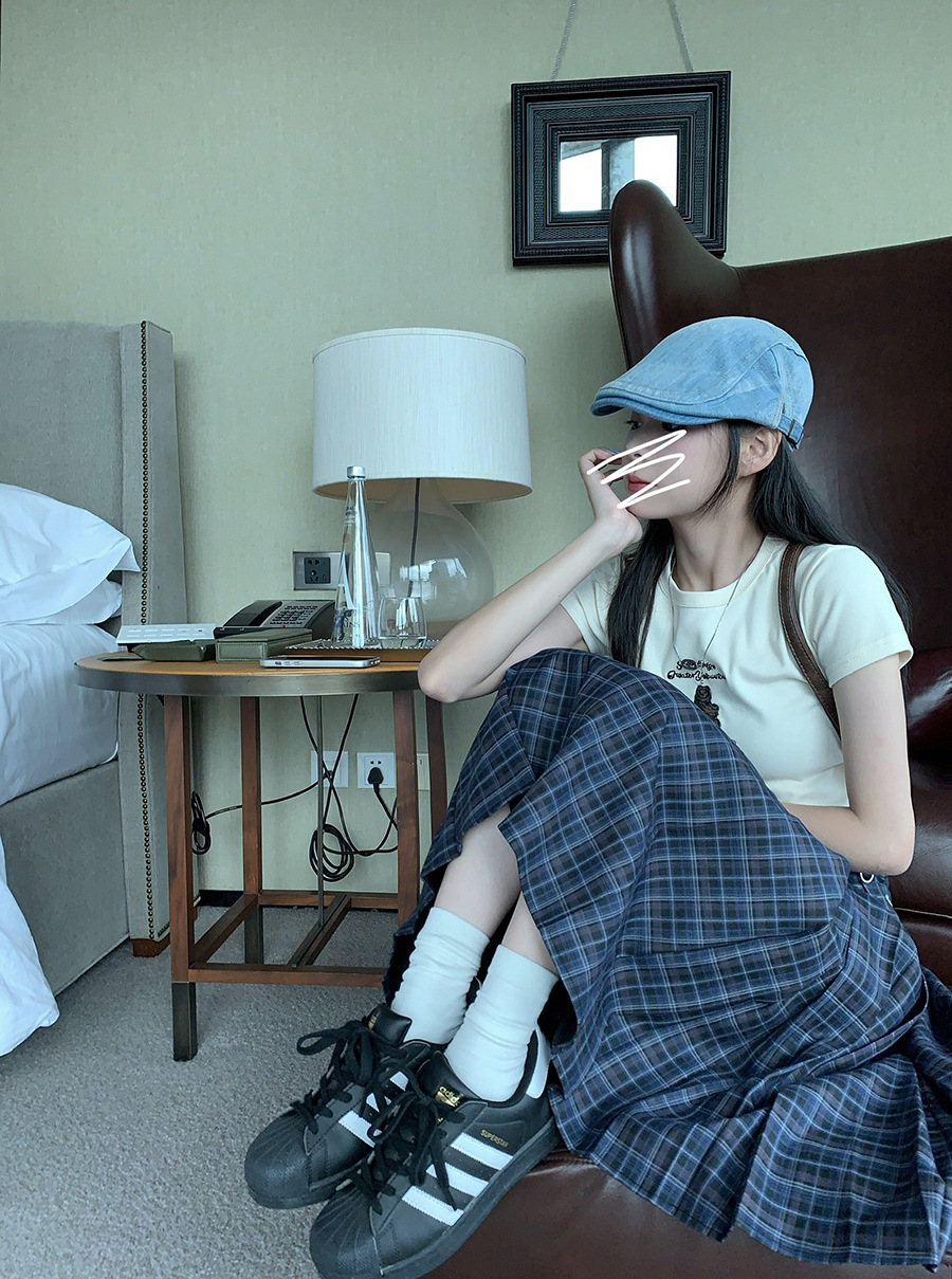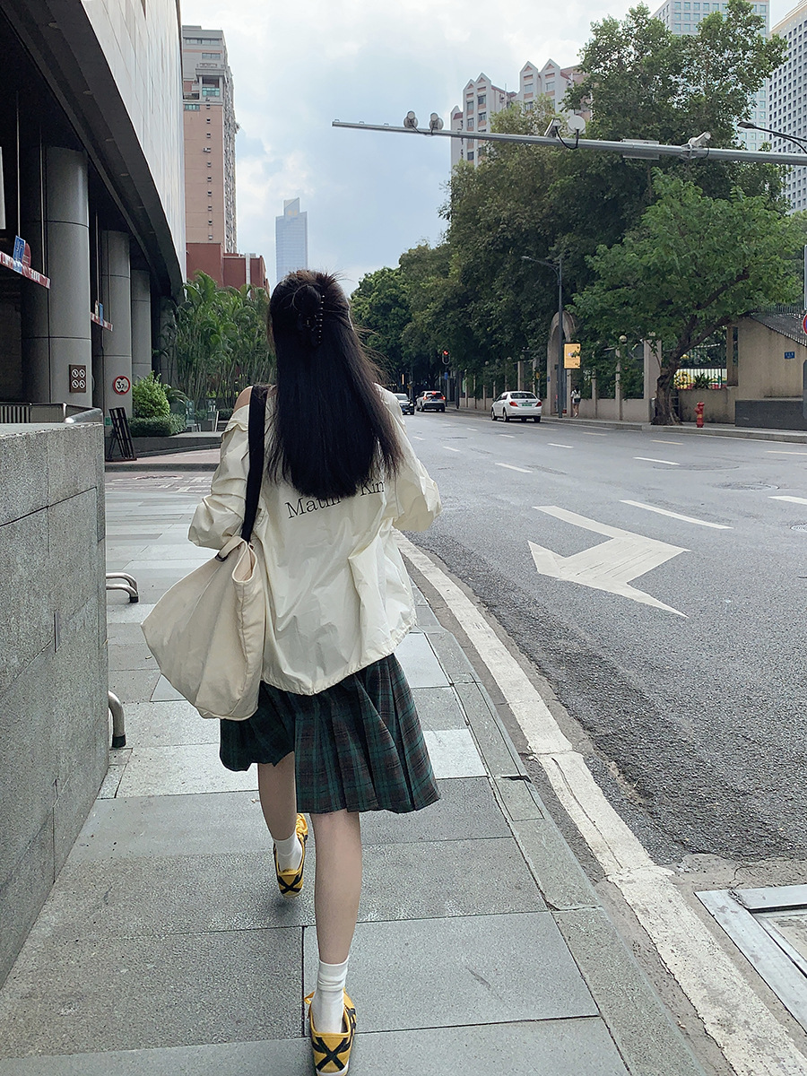 리얼 샷 아메리칸 아카데미 스타일 빈티지 격자 무늬 스커트 여성의 봄 높은 허리 슬리밍 주름 치마 미드 스커트 A-라인 스커트스토어 가기