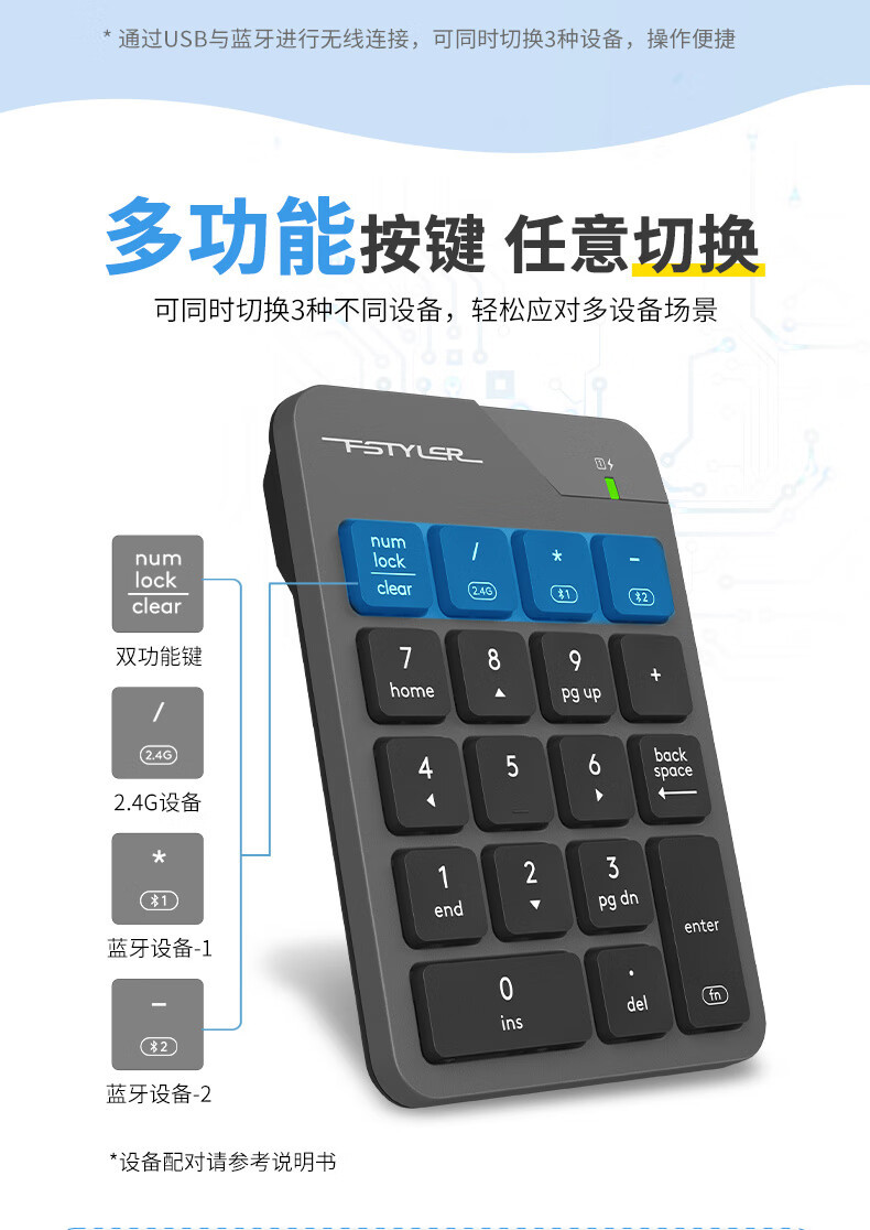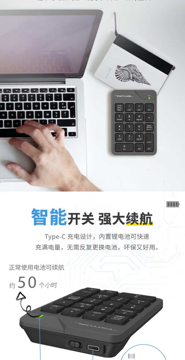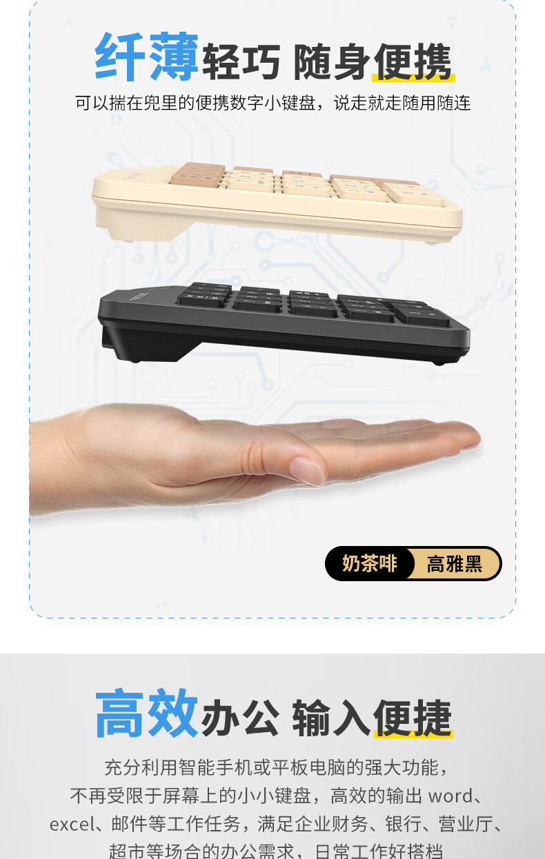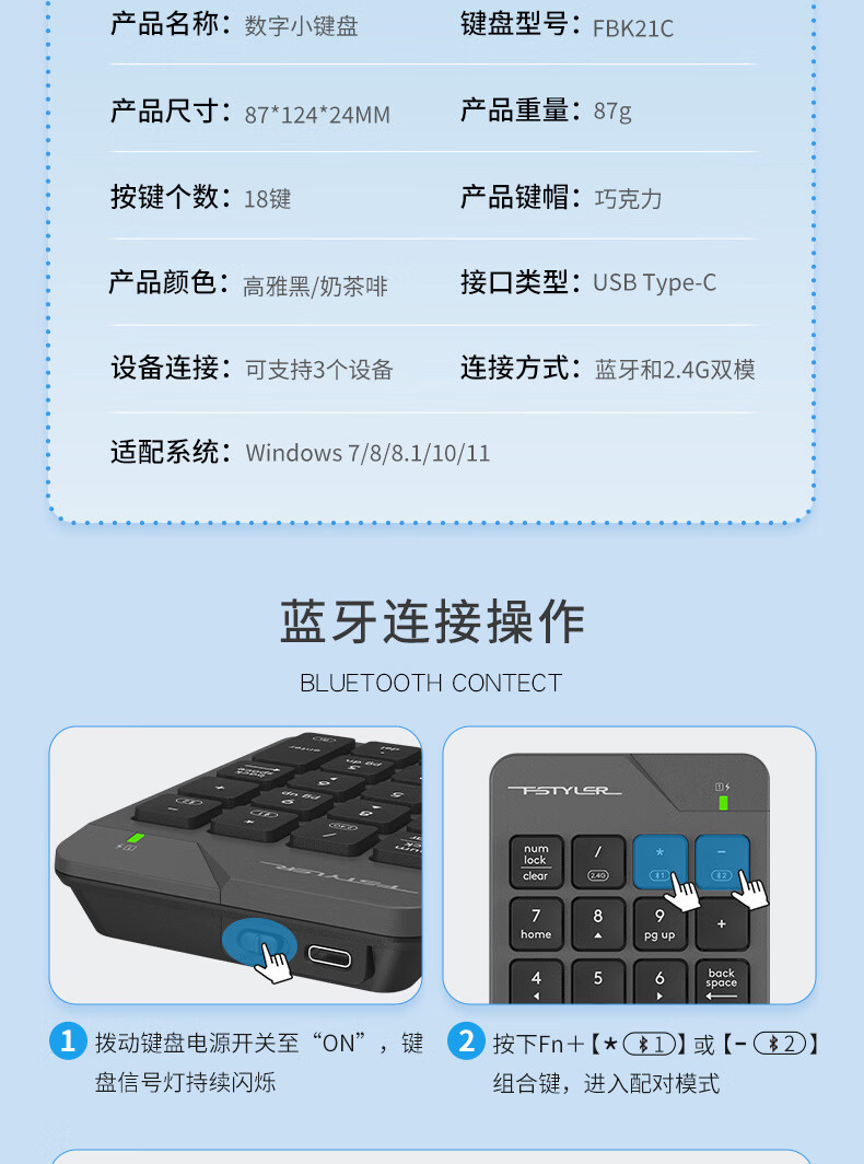 Shuangfeiyan FBK21C 무선 블루투스 듀얼 모드 디지털 키보드 라이트 휴대용 미니 금융 출납원 증권 사무소스토어 가기