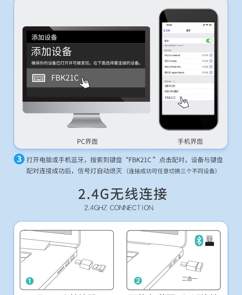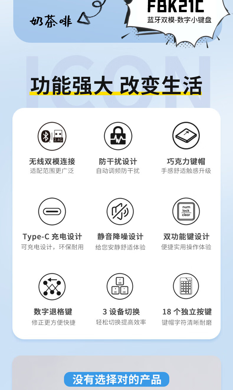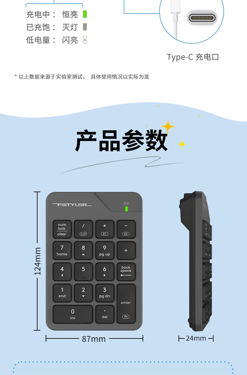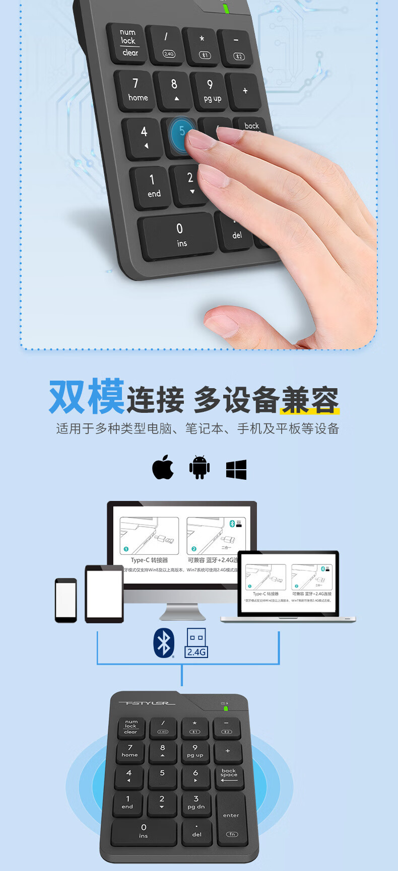 Shuangfeiyan FBK21C 무선 블루투스 듀얼 모드 디지털 키보드 라이트 휴대용 미니 금융 출납원 증권 사무소스토어 가기
