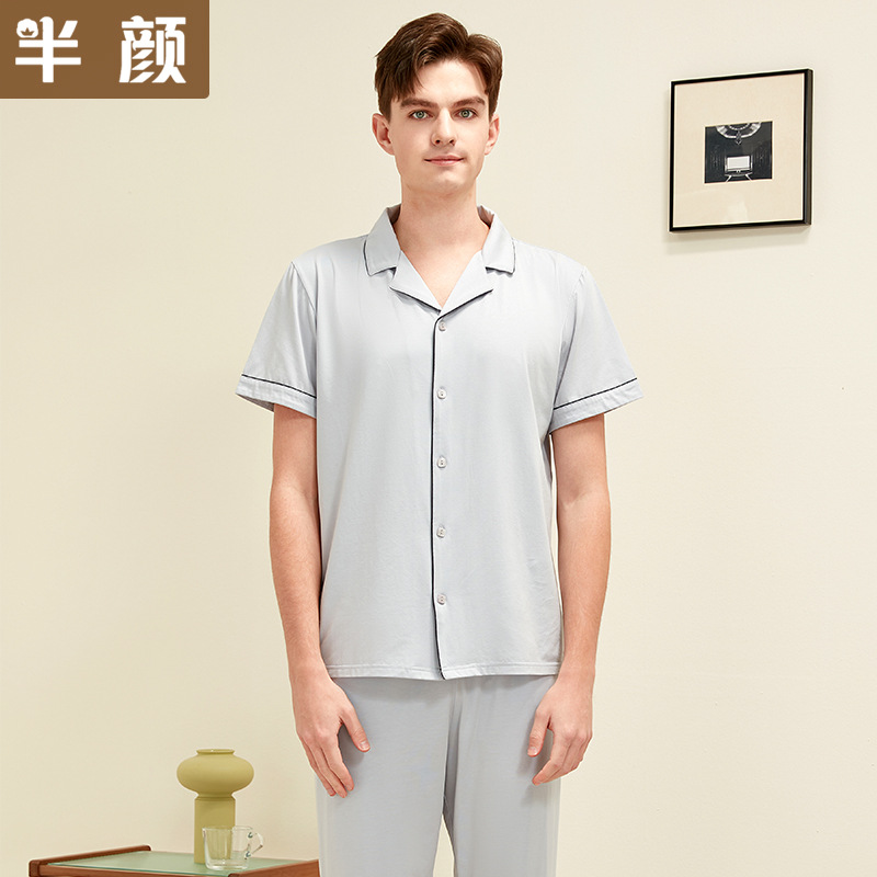 반얀 홈 의류 봄과 여름 커플 남성 니트 카디건 반팔 바지 편안한 란징 모달 코튼 파자마스토어 가기