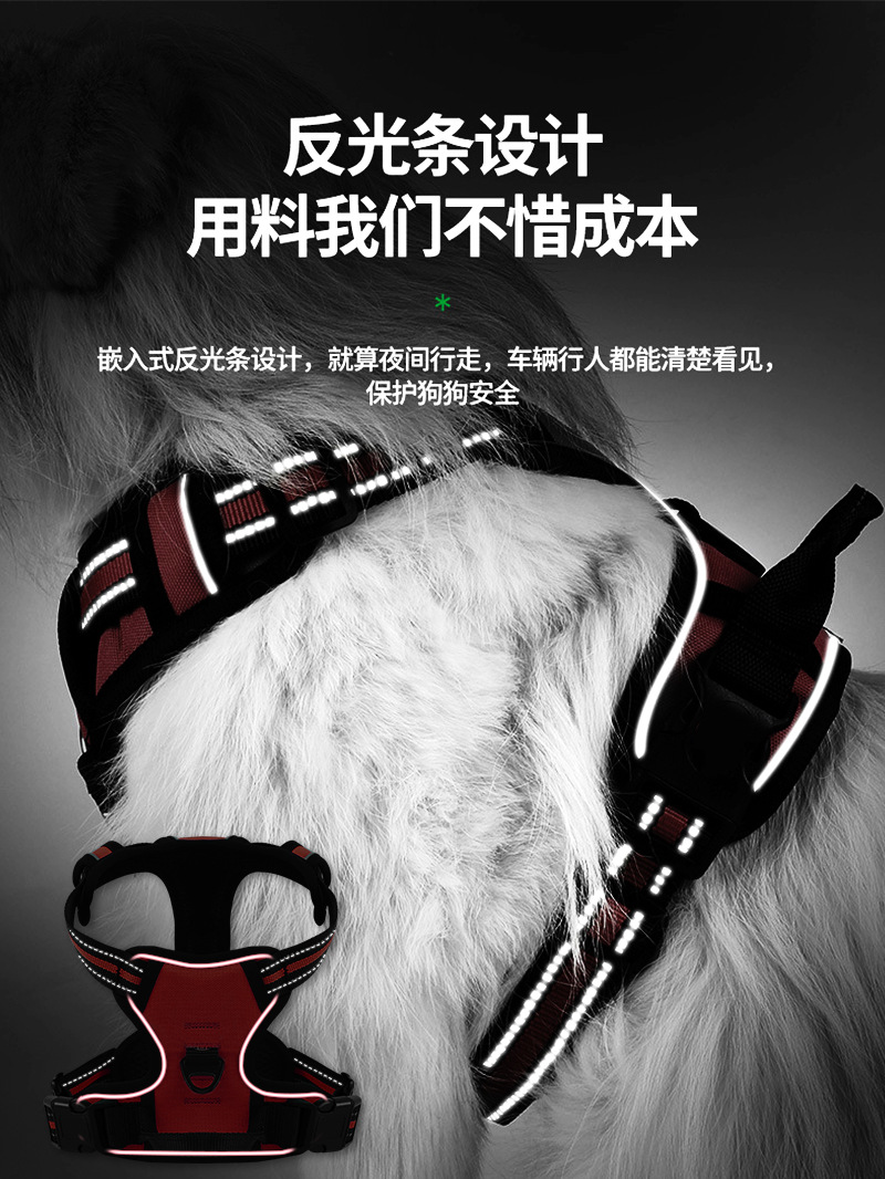 아마존 애완 동물 가슴 다시 폭발 방지 조끼 반사 가슴 뒤로 큰 개 애완 동물 가슴 다시 견인 로프 세트