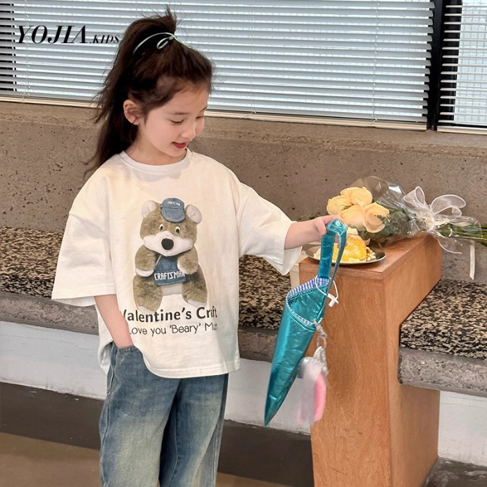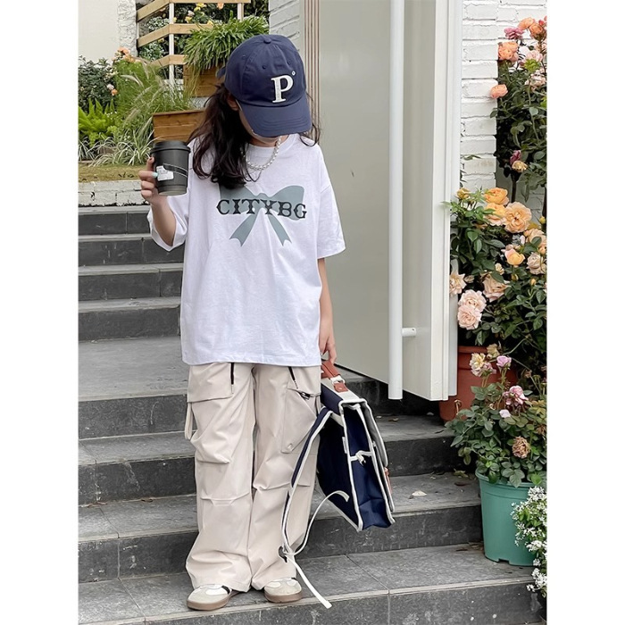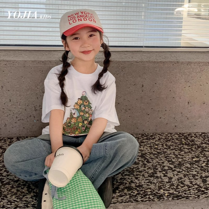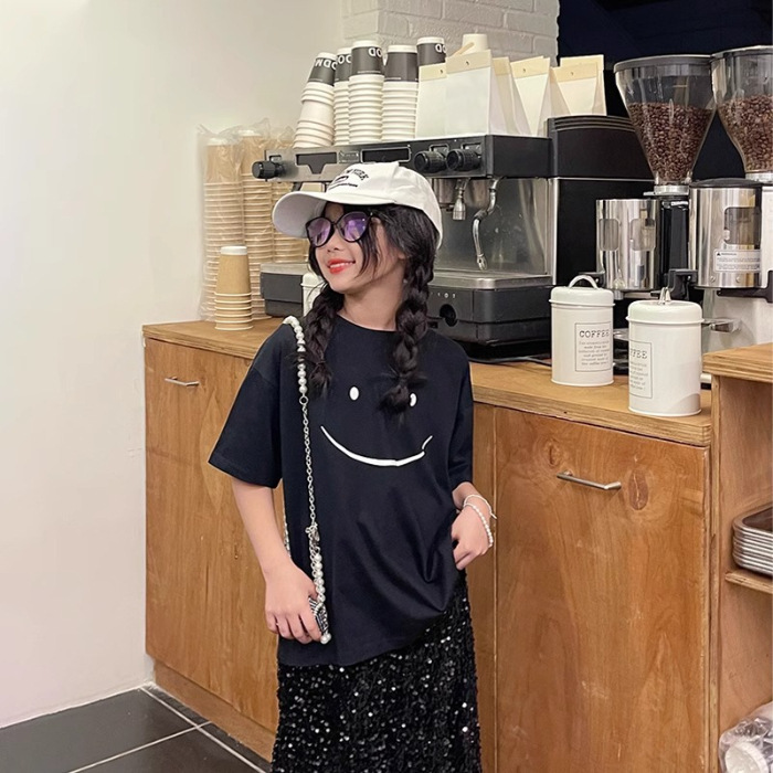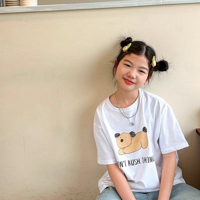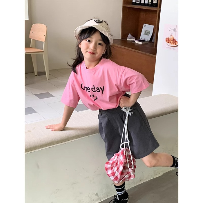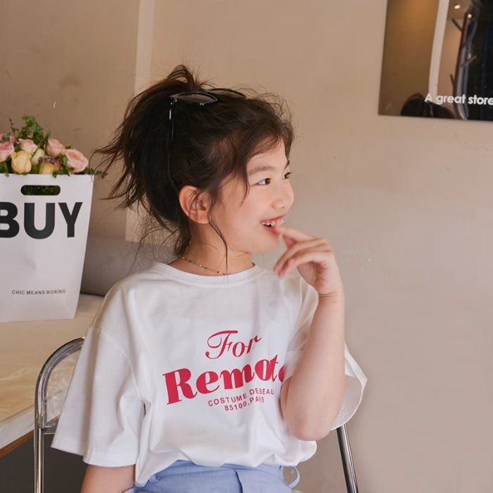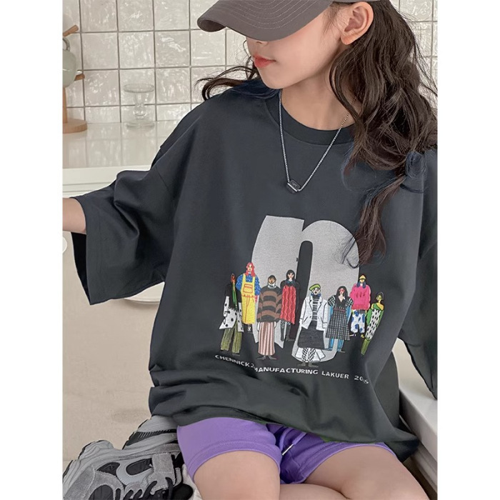 남학생과 여학생 한국식 만화 편지 2024 여름 새 반팔 티셔츠 큰 어린이 캐주얼 얇은면 티셔츠스토어 가기