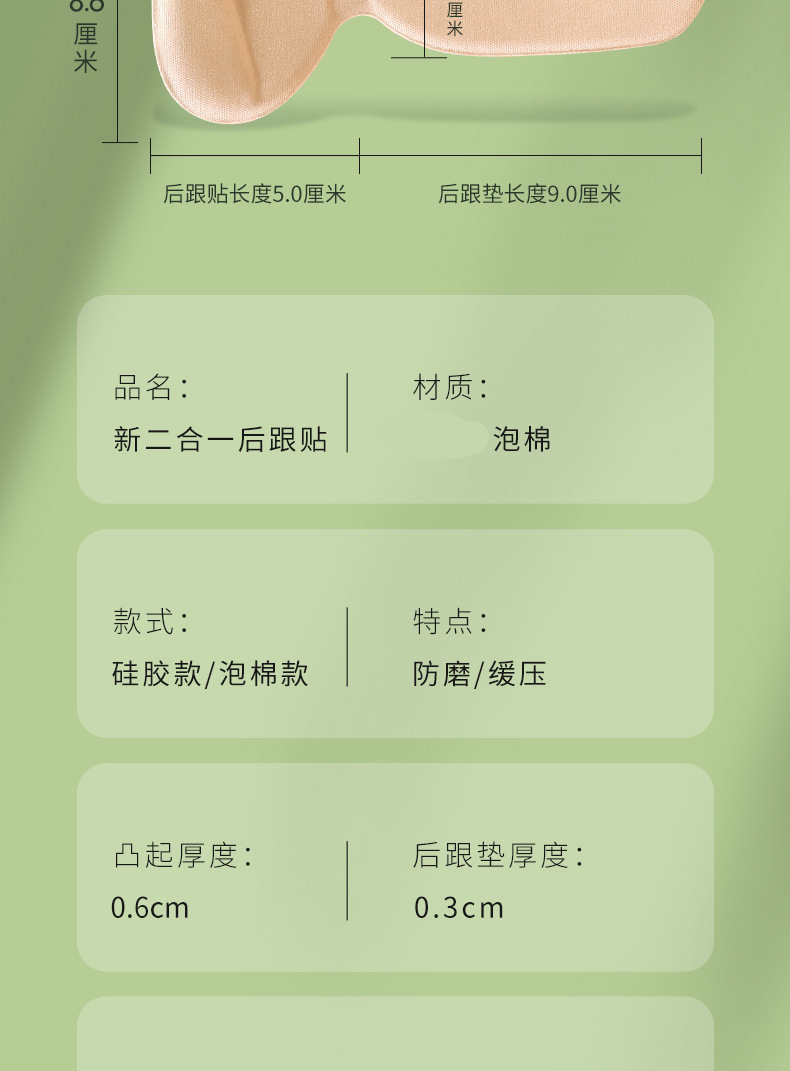 T 자형 힐 패치 폼 투인원 힐 패드 마모 방지 힐 패치 개선 신발 슬립 조정 신발 크기 절반 크기 깔창