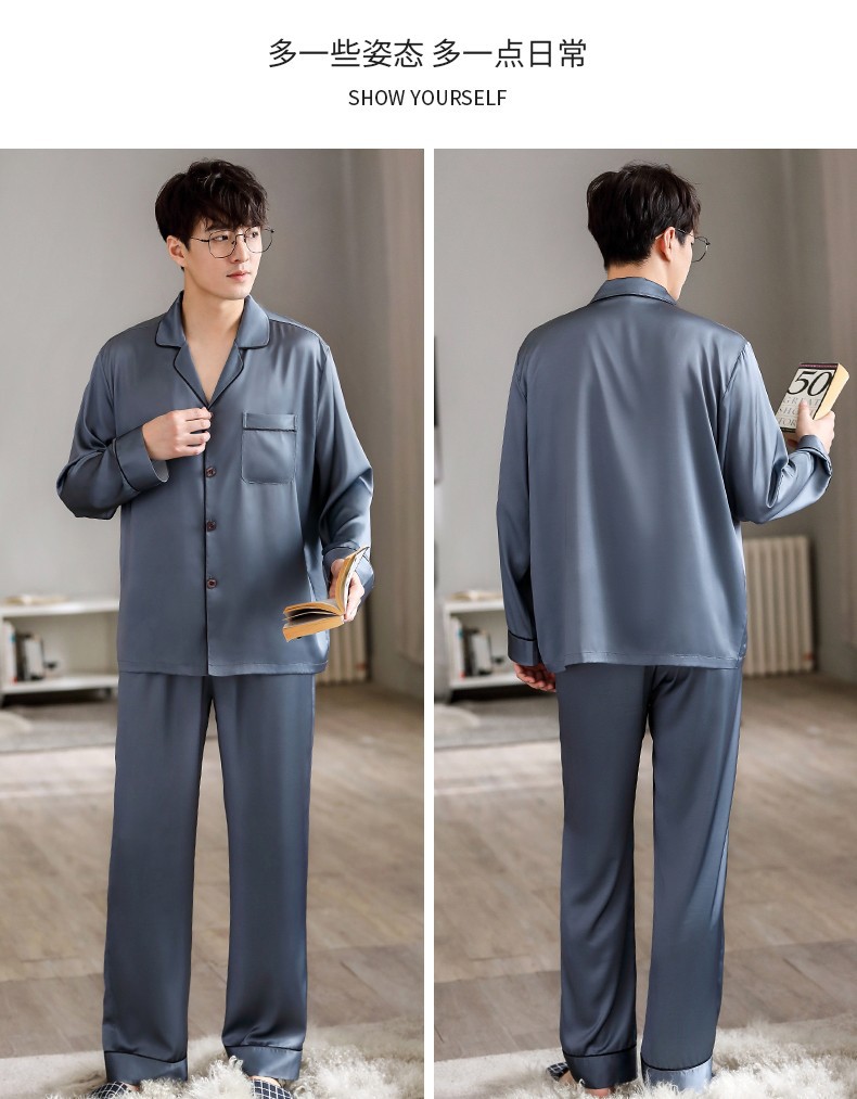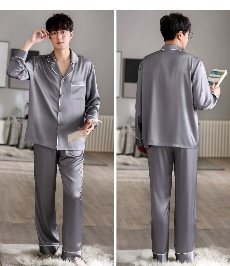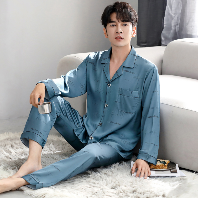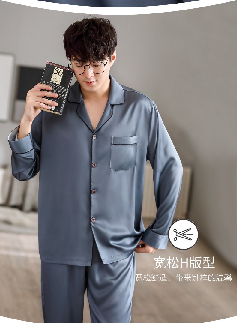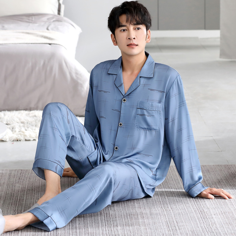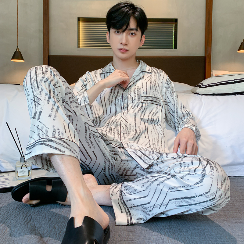 잠옷 남자 여름 아이스 실크 긴 소매 여름 얇은 십대 실크 시뮬레이션 남자 홈 옷 패션 새로운 스타일스토어 가기