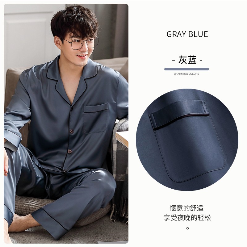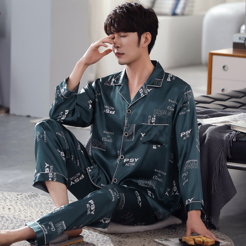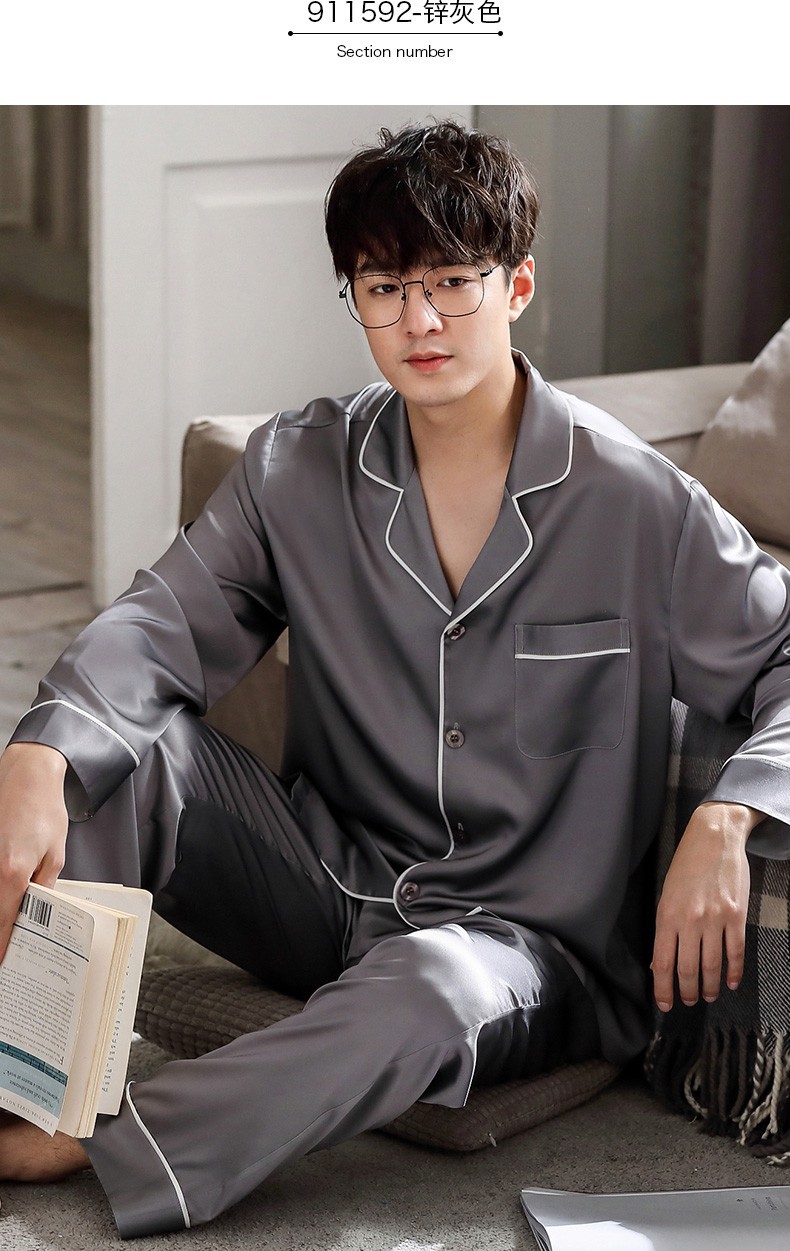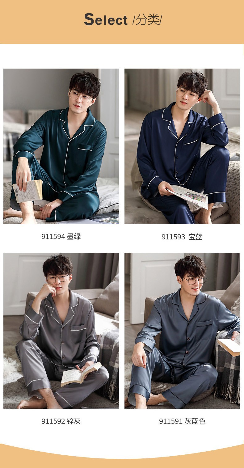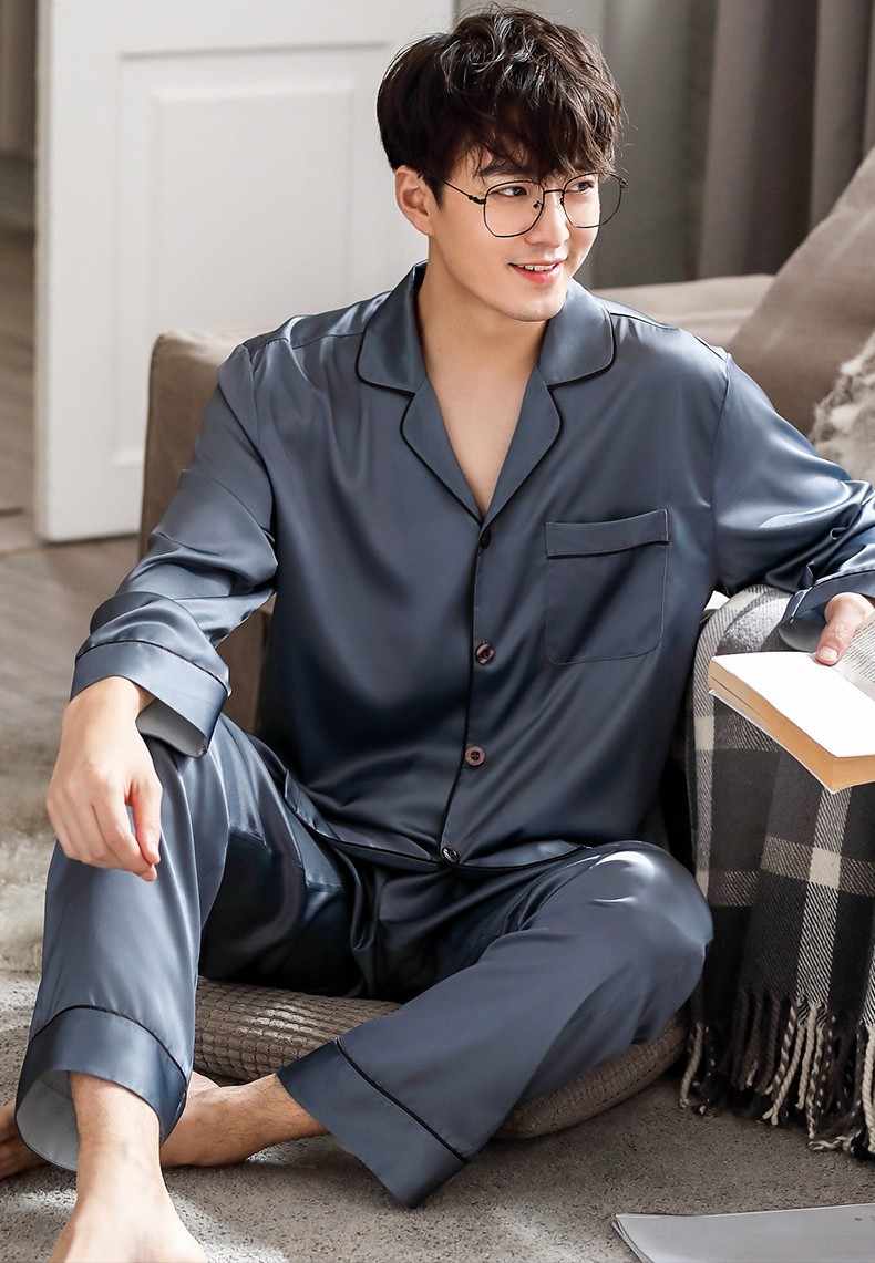 잠옷 남자 여름 아이스 실크 긴 소매 여름 얇은 십대 실크 시뮬레이션 남자 홈 옷 패션 새로운 스타일스토어 가기