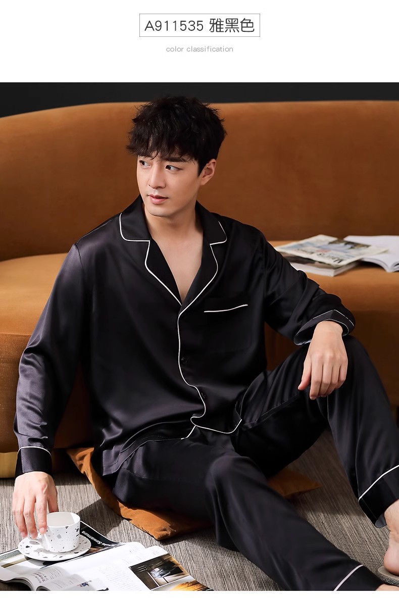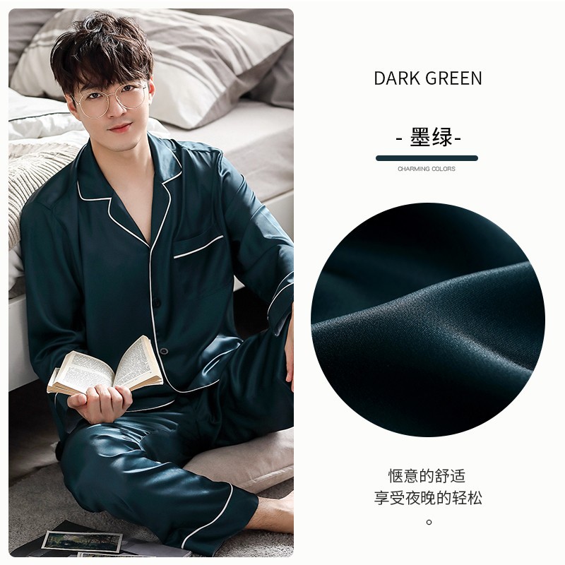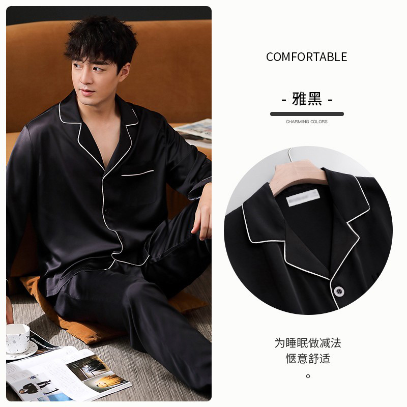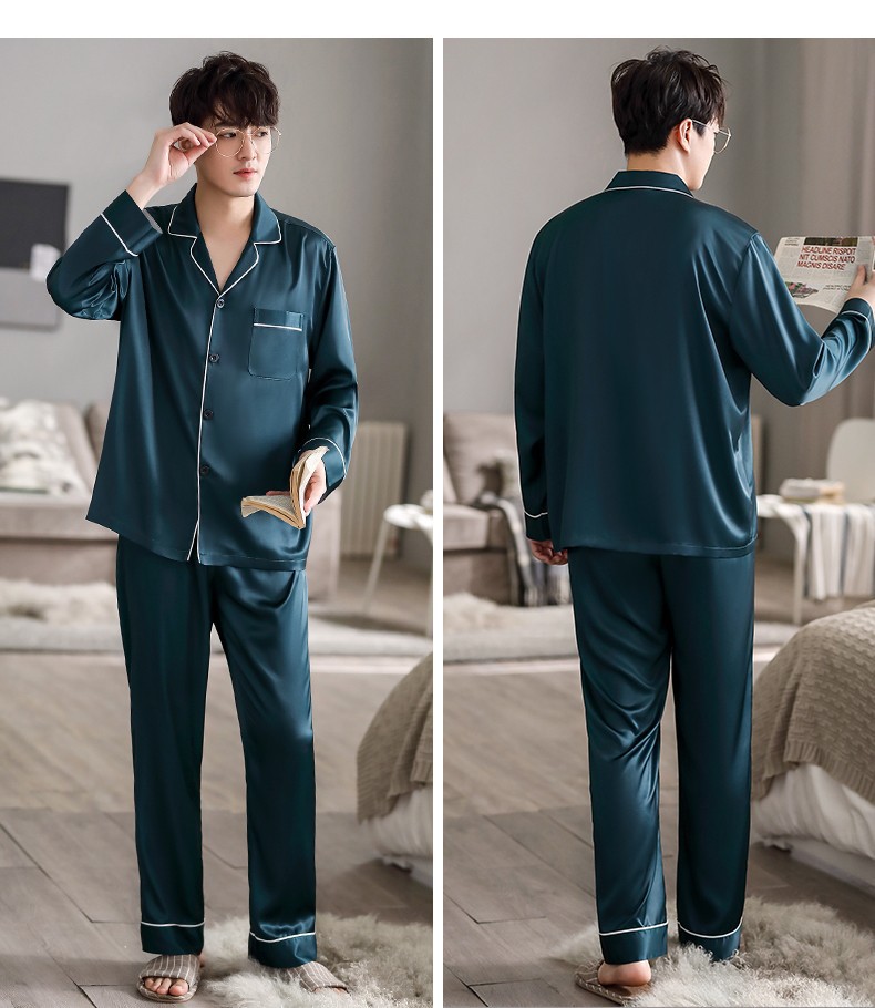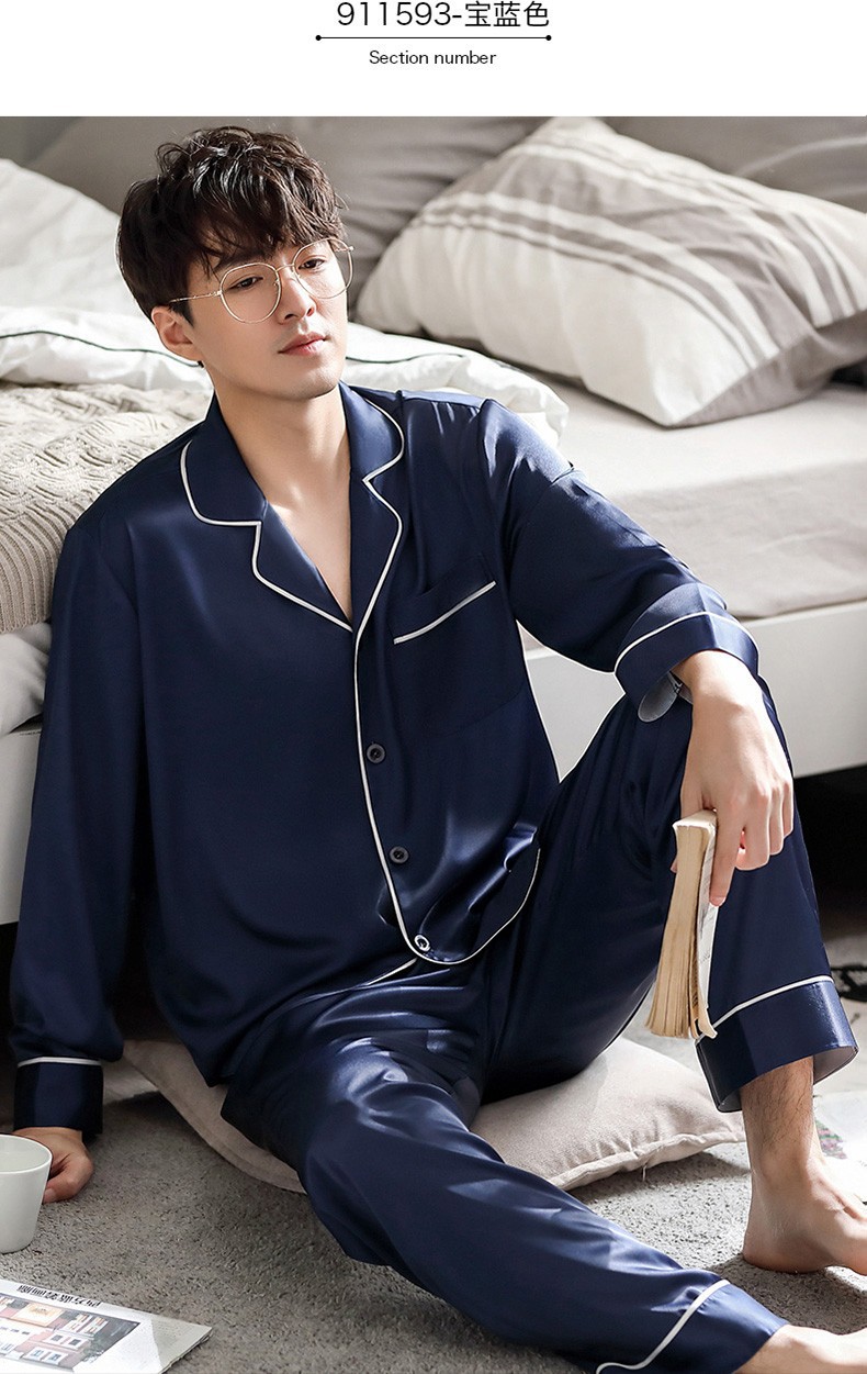 잠옷 남자 여름 아이스 실크 긴 소매 여름 얇은 십대 실크 시뮬레이션 남자 홈 옷 패션 새로운 스타일스토어 가기