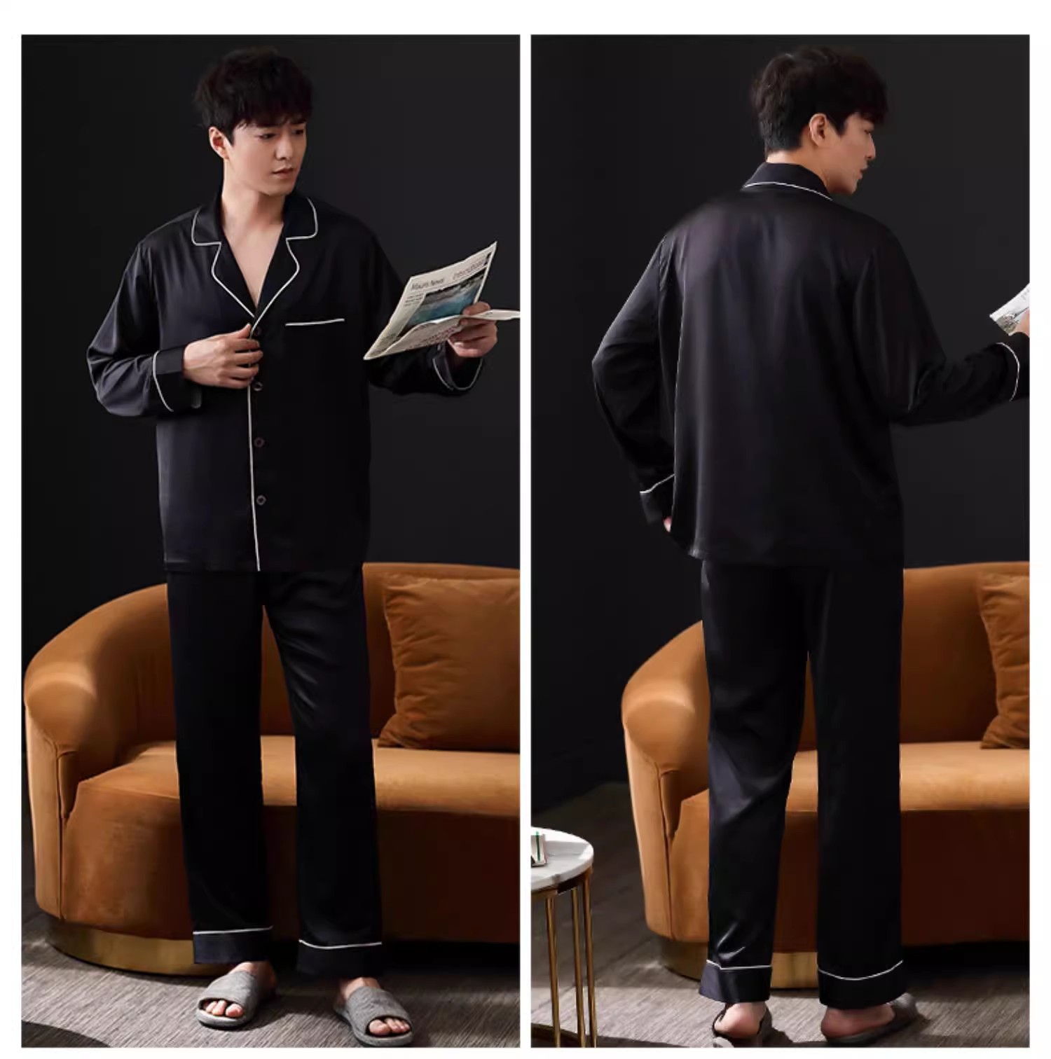 잠옷 남자 여름 아이스 실크 긴 소매 여름 얇은 십대 실크 시뮬레이션 남자 홈 옷 패션 새로운 스타일