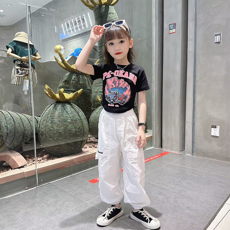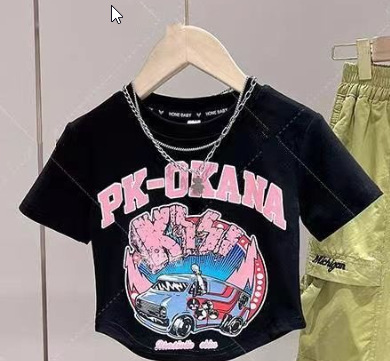 소녀 봄과 여름 2024 새로운 티셔츠 큰 어린이 한국 반팔 프린트 재킷 여름 트렌드 짧은 소매 대외 무역스토어 가기