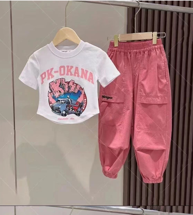 소녀 봄과 여름 2024 새로운 티셔츠 큰 어린이 한국 반팔 프린트 재킷 여름 트렌드 짧은 소매 대외 무역
