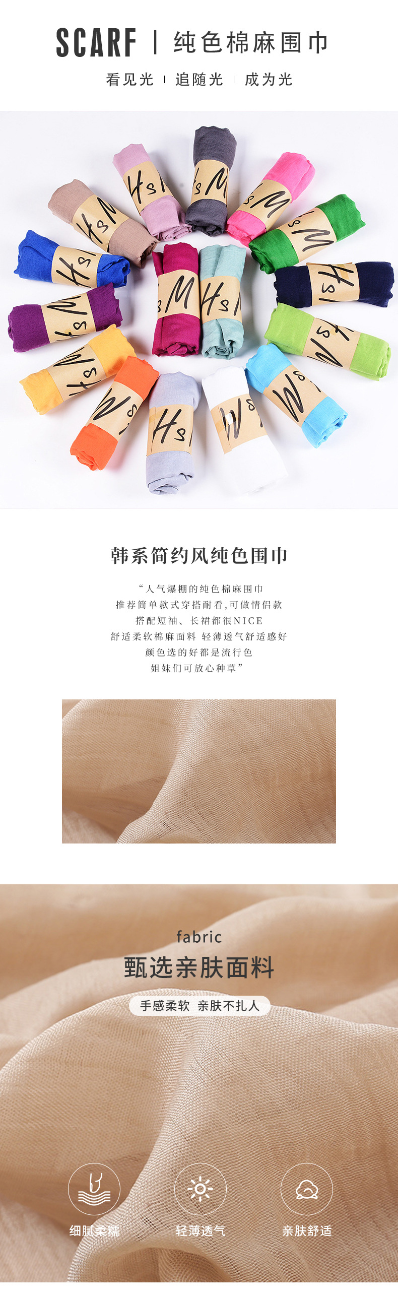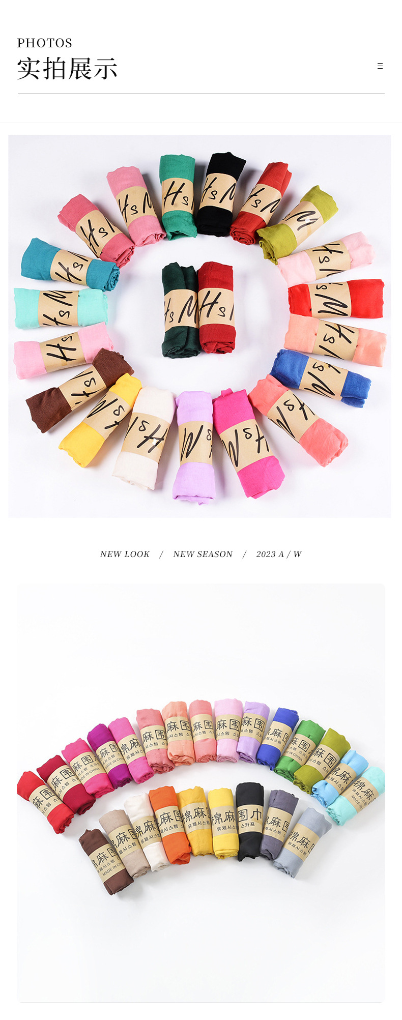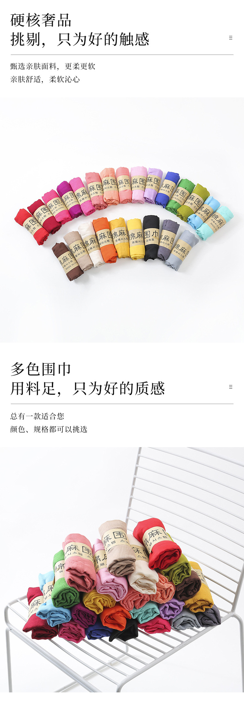 면화와 리넨 스카프 여성의 겨울 새로운 민족 스타일 단색 목도리 캔디 컬러 주름 스카프 커버 실크 스카프 도매스토어 가기