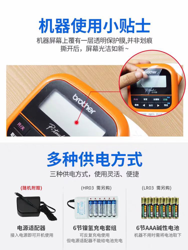 형제 PT-E115B 핸드 헬드 라벨 프린터 손에 작은 편리한 하나의 기계 쉬운 사무실스토어 가기