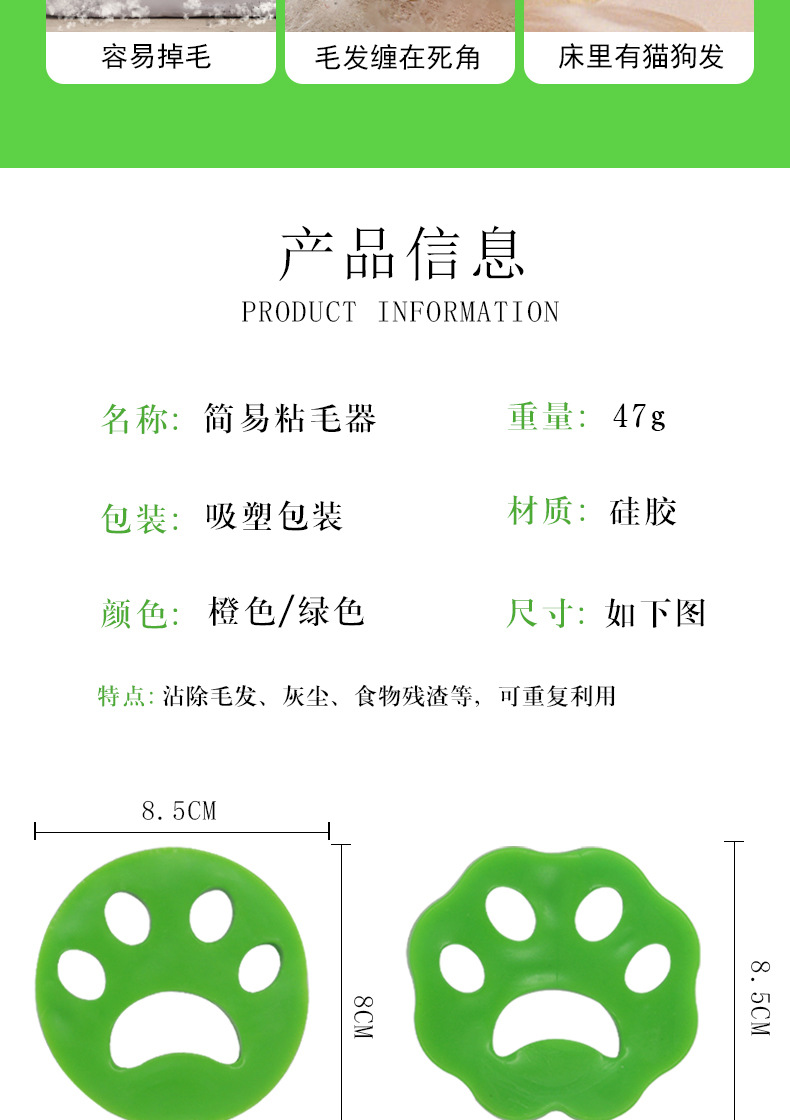 머리 제거 브러시 스티커 애완 동물 고양이 머리 세척 가능한 먼지 제거 스티커 세탁기 머리 제거 양면 실리콘 애완 동물 머리 제거스토어 가기