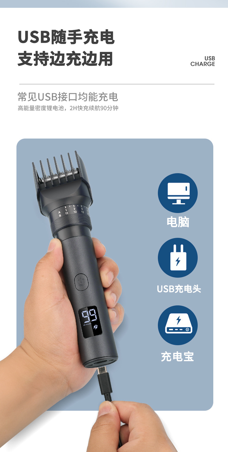 电机功率:5W,100-240V通用电压;USB充电;