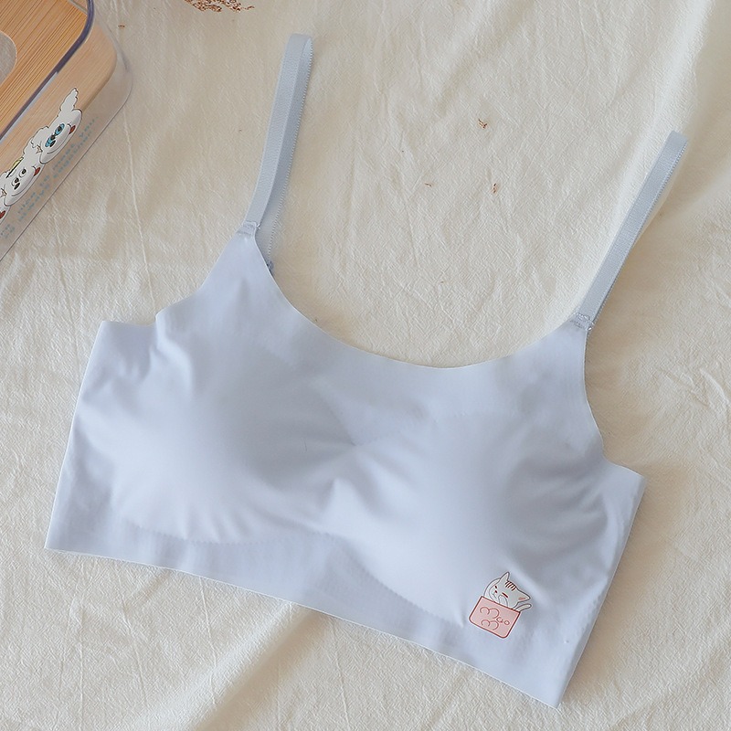 여름 아이스 실크 tracless 소녀 속옷 학생 중학생 랩 가슴 개발 고등학생 스포츠 얇은 슬링 텍스트