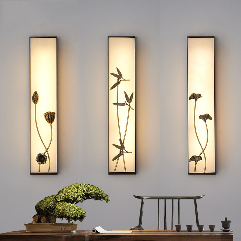 새로운 중국 스타일의 모든 구리 대리석 벽 램프 거실 TV 배경 벽 램프 선 침실 침대 옆 램프 복도 램프