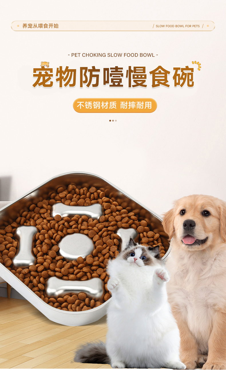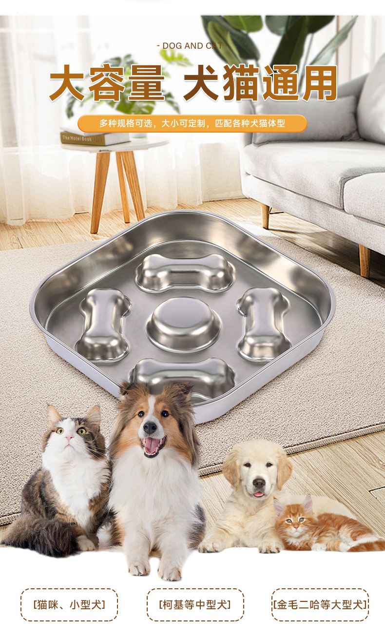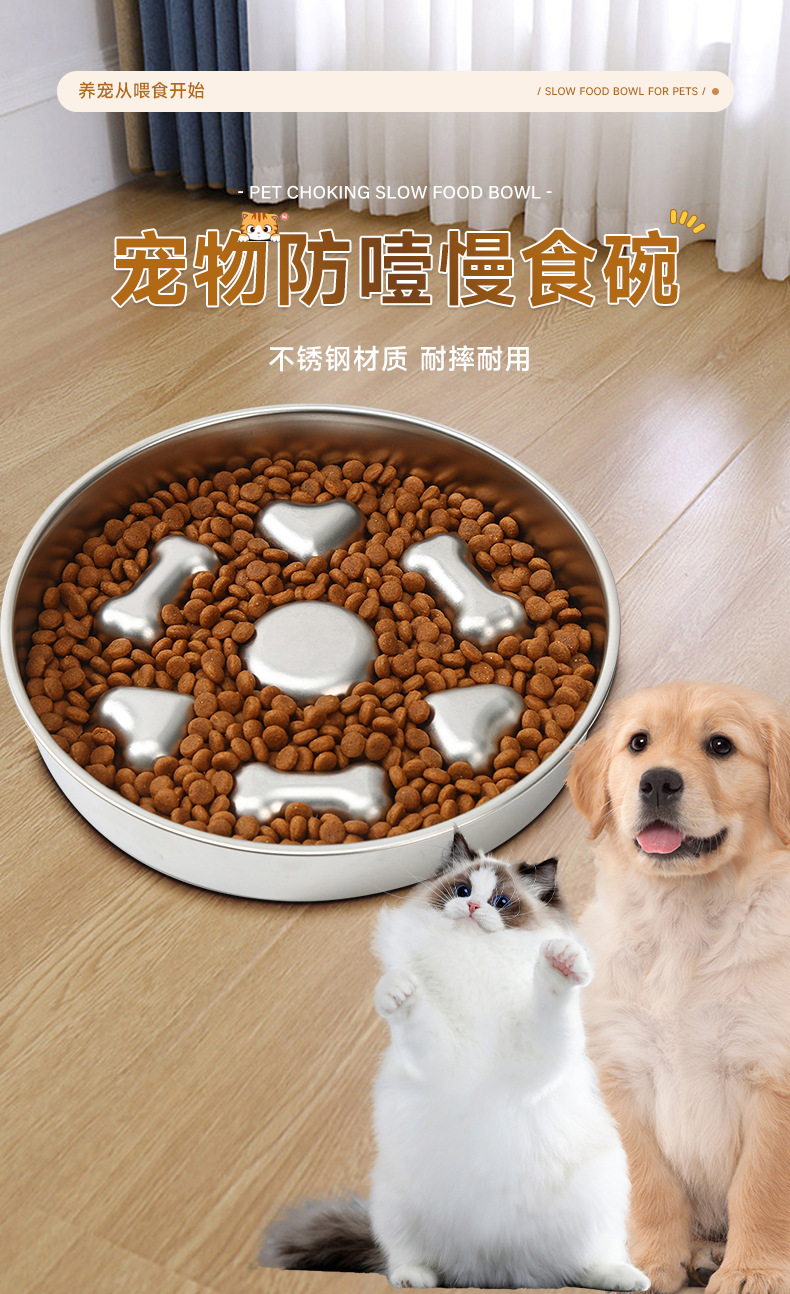 304 스테인레스 스틸 슬로우 푸드 그릇 미끄럼 방지 개 그릇 애완 동물 그릇 고양이 그릇 테디 고양이 애완 동물 사료 애완 동물 용품스토어 가기