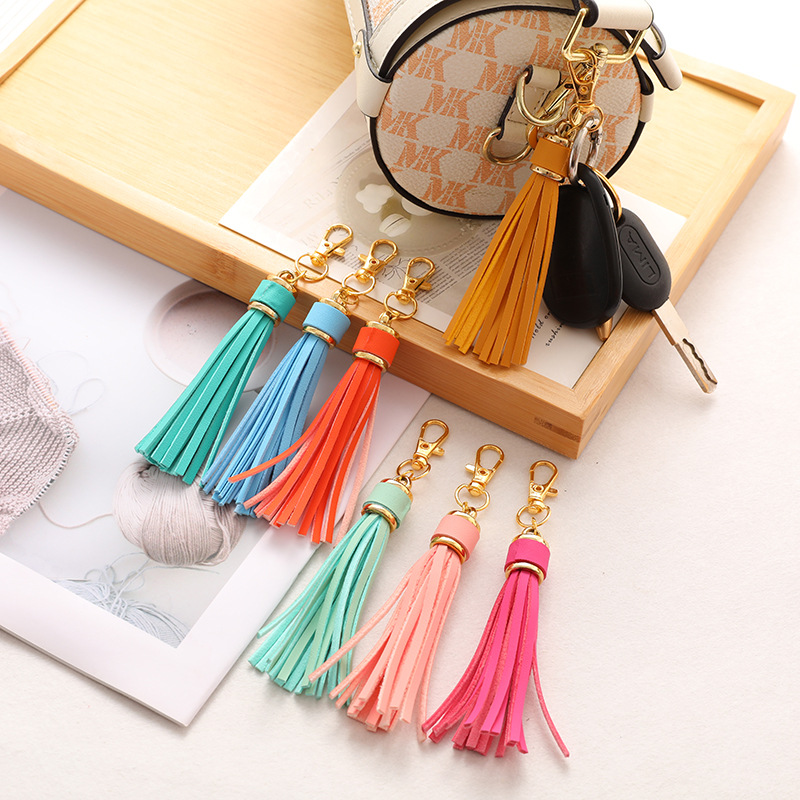 크로스보더 PU 가죽 태슬 키체인 실리콘 팔찌 태슬 액세서리 가방 장식품 가죽 키체인