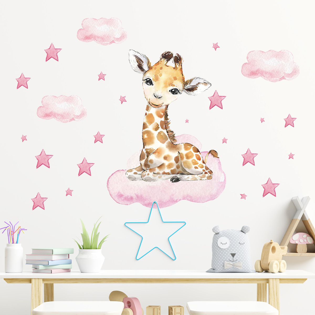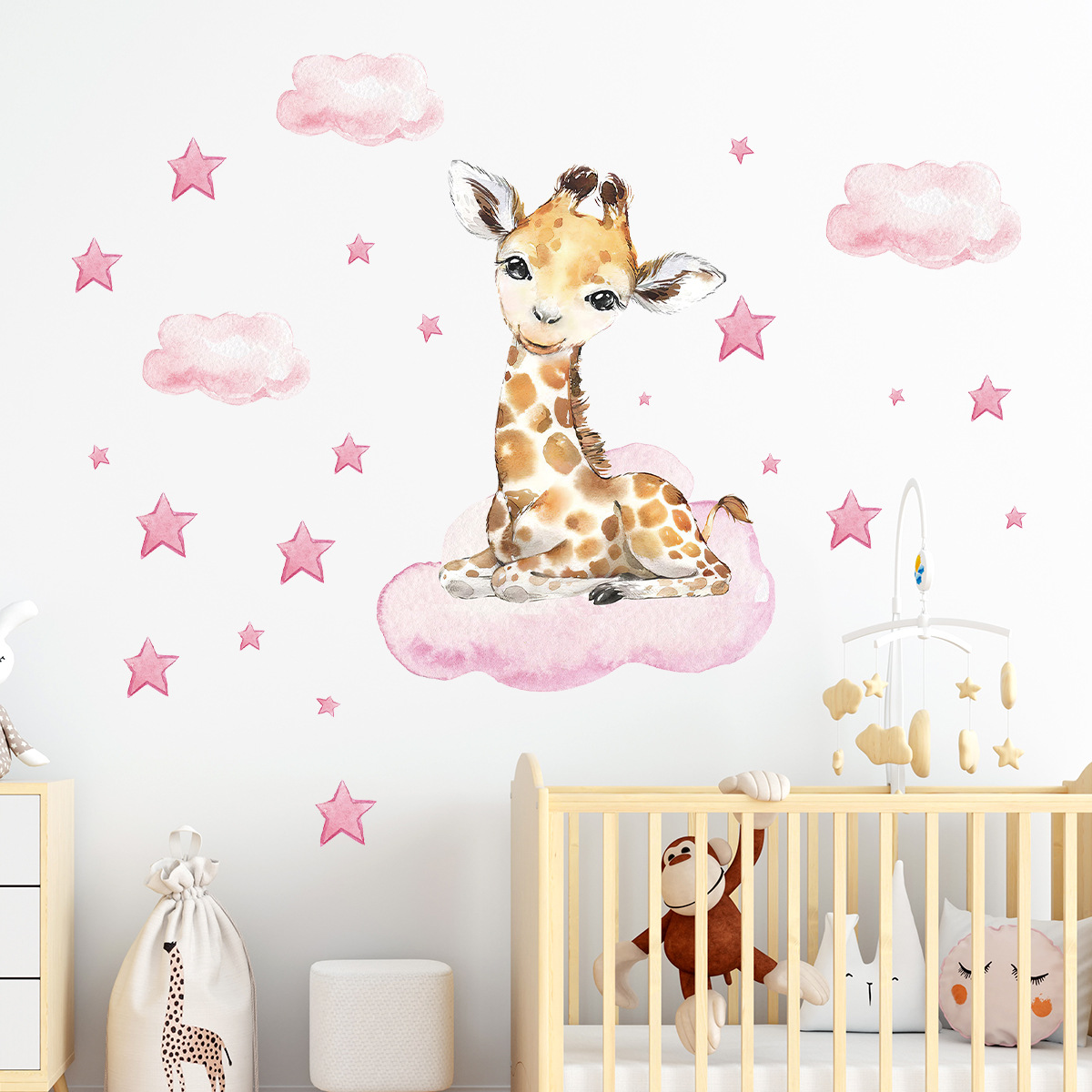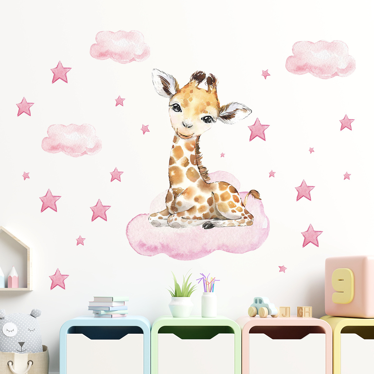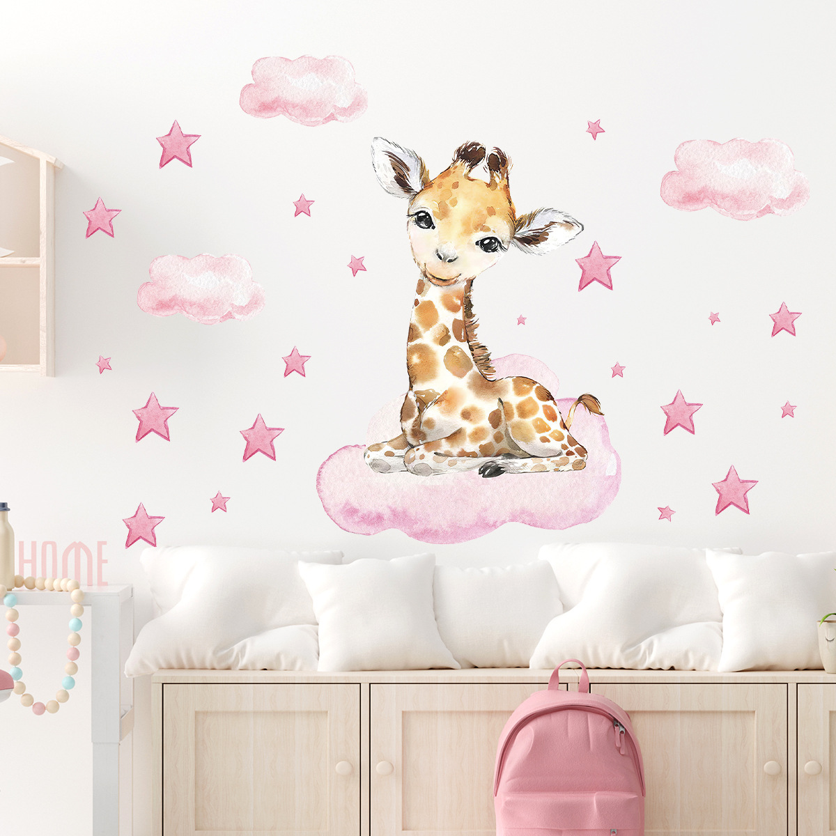 BR0196H 만화 핑크 스타 구름 귀여운 기린 자기 접착 벽 스티커 어린이 방 장식 스티커