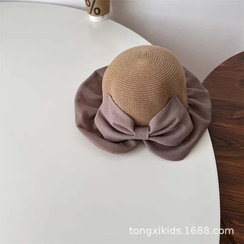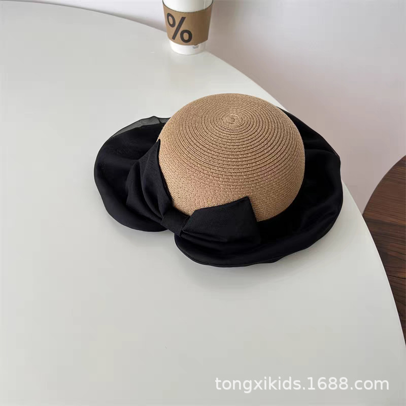 한국 스타일 어린이 레이스 밀짚 모자 빅 보우 원사 소녀 아기 야외 사진 Concave 그늘 모자 트렌디스토어 가기