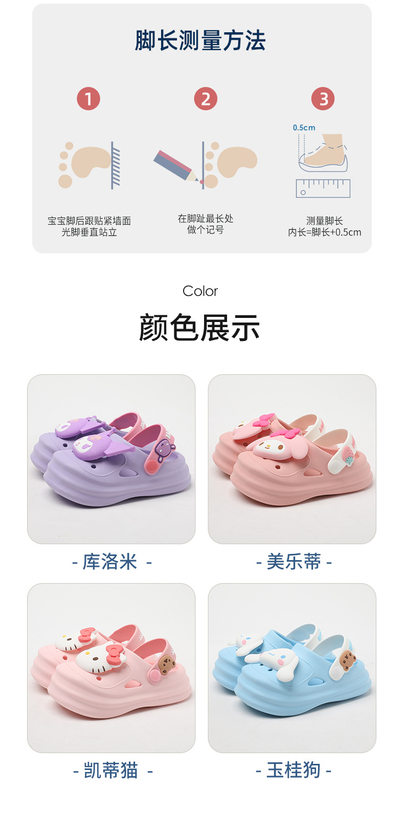 산리오 어린이 동굴 신발 귀여운 만화 소녀 아기 여름 홈 실내 미끄럼 방지 외부 부드러운 동굴 신발스토어 가기