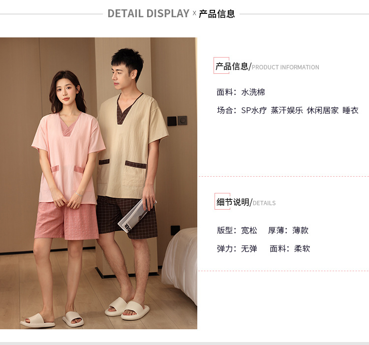 Mi Zhu Khan Steaming 의류 여성용 순수 코튼 뷰티 스파 사우나 커플 파자마 남성 대형 목욕 발 치료 홈 의류스토어 가기