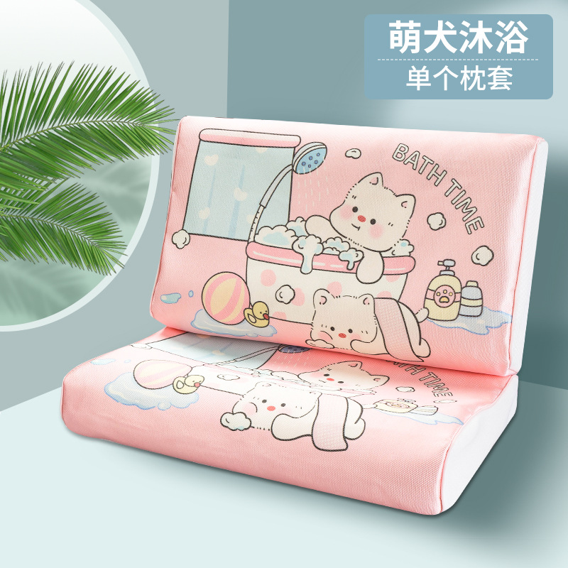 어린이 라텍스 베개 아이스 실크 여름 30x50 만화 메모리 베개 케이스 싱글 40X60 가구 통기성 베개 커버