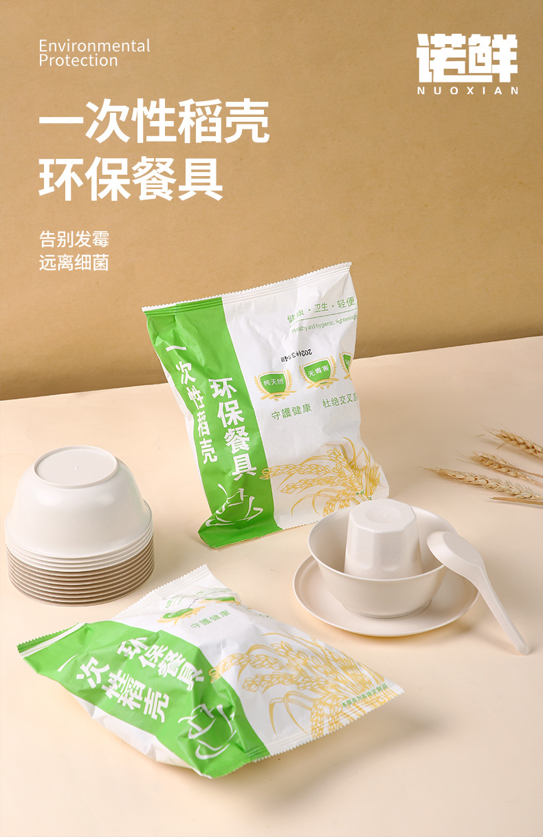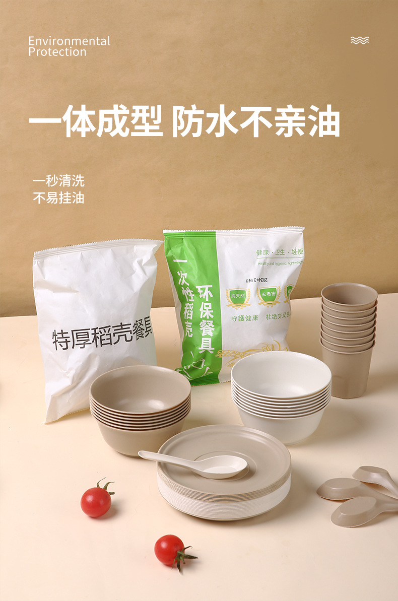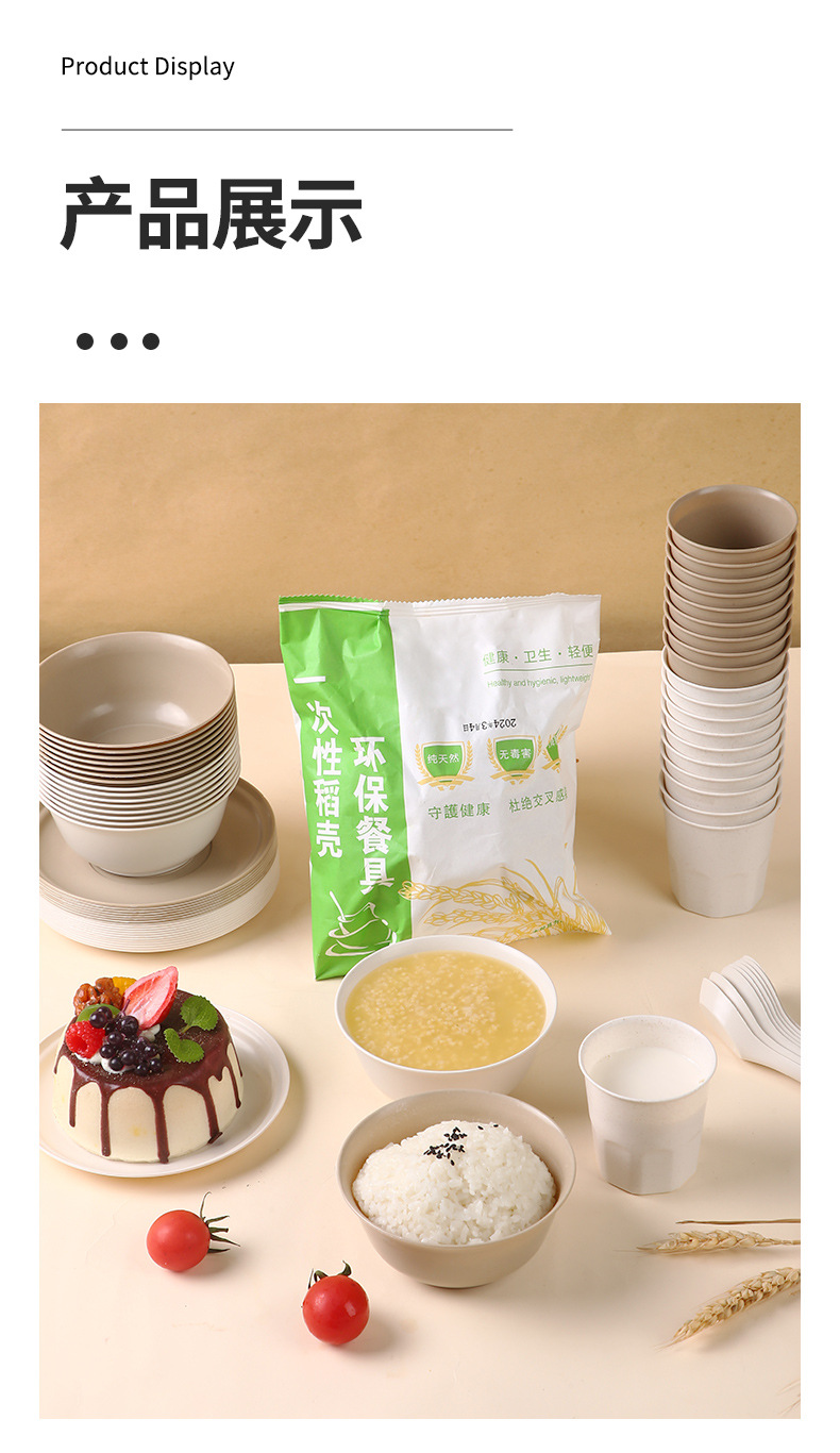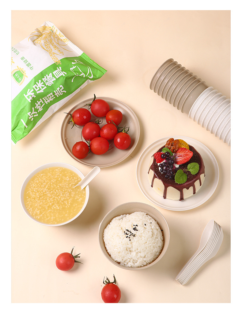 쌀 껍질 일회용 식기 그릇 컵 접시 숟가락 멀티 피스 종이 포장 야외 가정 상업 피크닉 캠핑 4 피스 세트